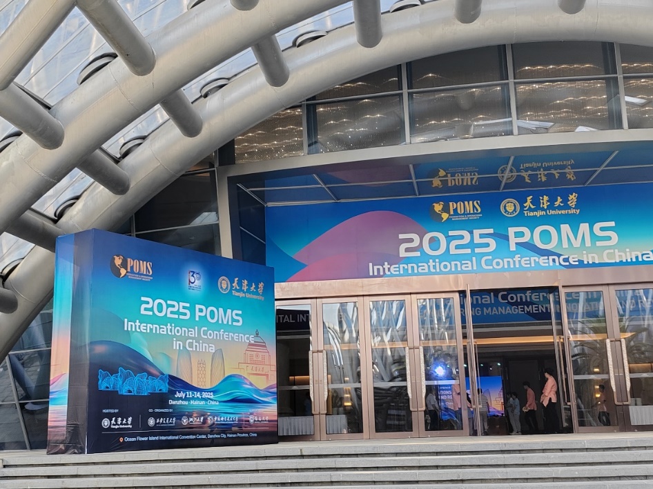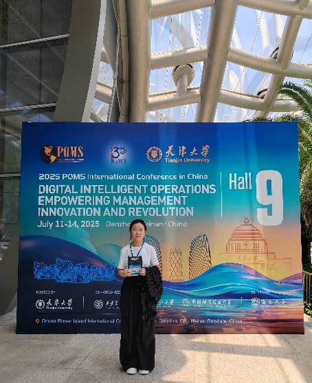 7月13日,哔咔漫画 23级管理科学与工程专业研究生陆志钰前往海南参加2025年中国生产与运营管理(POMS)国际会议(2025 POMS International Conference in China)。会议于7月11日-14日在海南省儋州市举行,主题为“数智化运营赋能管理创新与变革”,由天津大学主办,浙江大学、中国科学技术大学、西安交通大学协办,海南大学特别支持。本次会议共设有24个分会场与192个分论坛,来自国内外的1400余名专家学者通过专题报告、前沿成果展示与企业参访等多形式互动,围绕不同研究前沿与热点话题展开深入讨论。