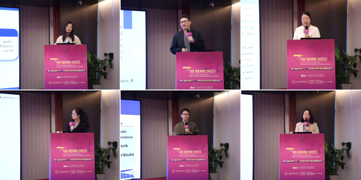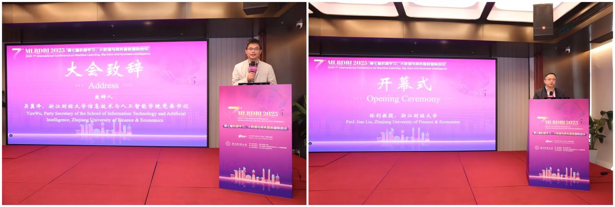 2025年10月24日至26日,由哔咔漫画 主办,哔咔漫画 哔咔漫画 承办,AEIC学术交流中心协办的第七届机器学习、大数据与商务智能国际会议(MLBDBI 2025)在杭州成功举办。武汉大学王峰教授、大连海事大学白丹宇教授、澳门科技大学高开周教授、浙江工商大学毛郁欣教授、哔咔漫画 哔咔漫画 党委书记吴翼泽、哔咔漫画 副院长林剑等出席会议。来自澳门科技大学、哔咔漫画 、天津职业技术师范大学等全国多所高校,太湖流域管理局、甘肃省气象服务中心、建设银行等多家企事业单位的专家学者、青年教师、研究生等齐聚杭州,共同交流机器学习、大数据与商务智能的最新研究进展和未来趋势。