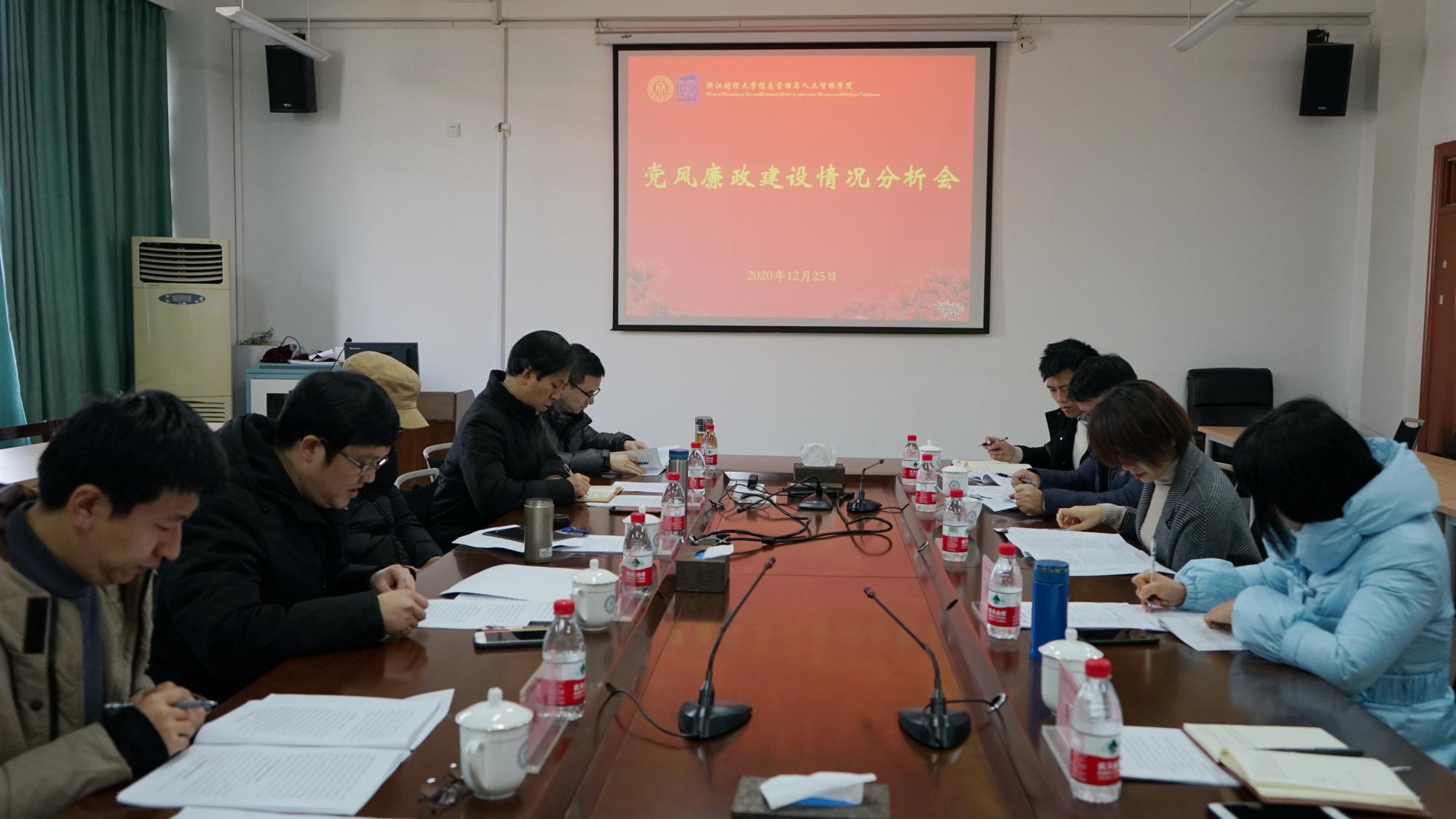 12月25日,信息管理与人工智能学院2020年领导班子党风廉政建设情况分析会在学院楼404会议室召开。校党委委员、副校长王奎泉到会指导,学院领导班子成员、党委班子成员、纪委班子成员参加会议。会议由学院党委书记徐奇伟主持。