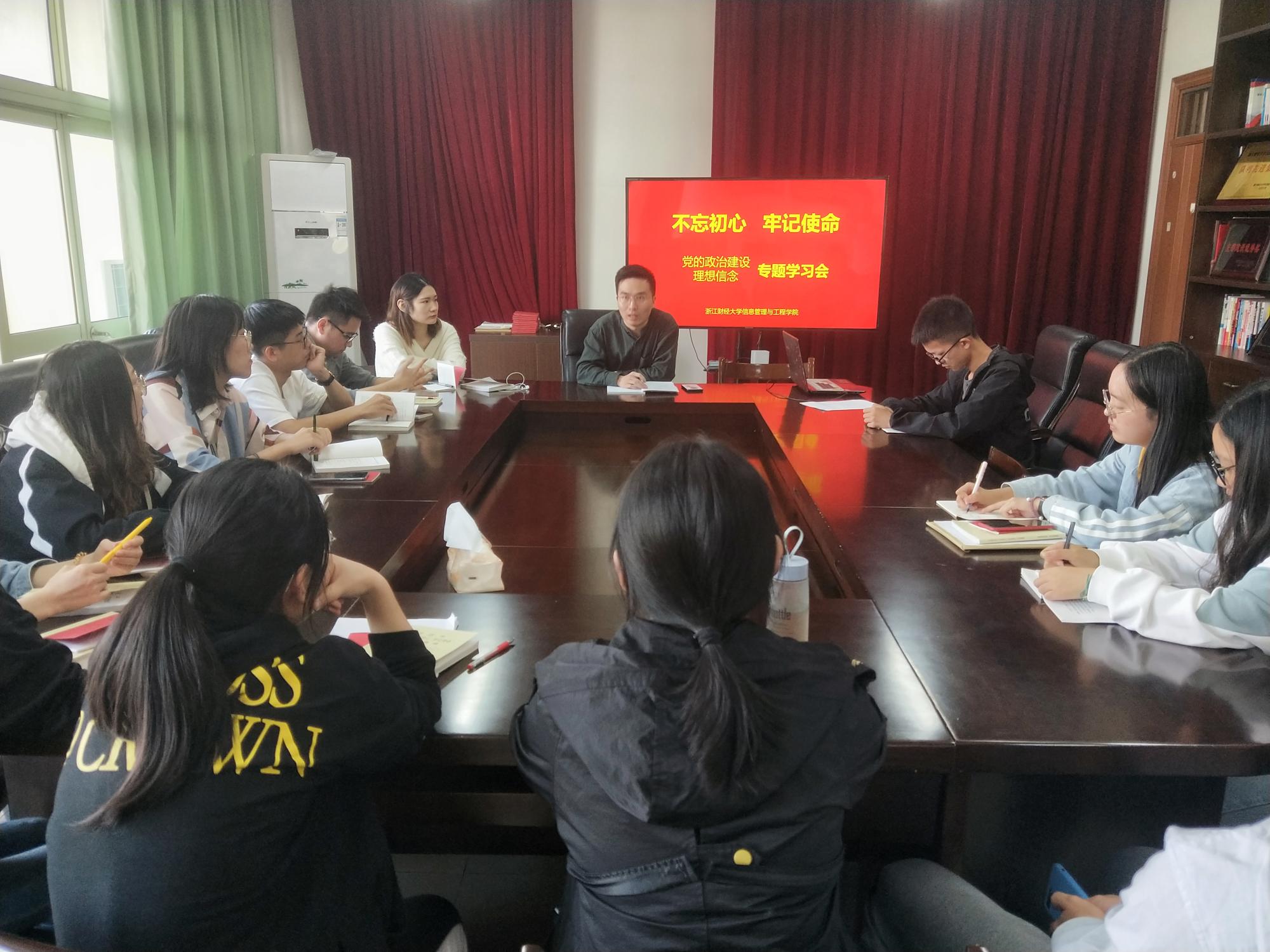 1015日,信息管理与工程学院学生第四党支部在9号楼506召开支部专题理论学习会。理论学习围绕“政治建设、理想信念”两个专题开展。