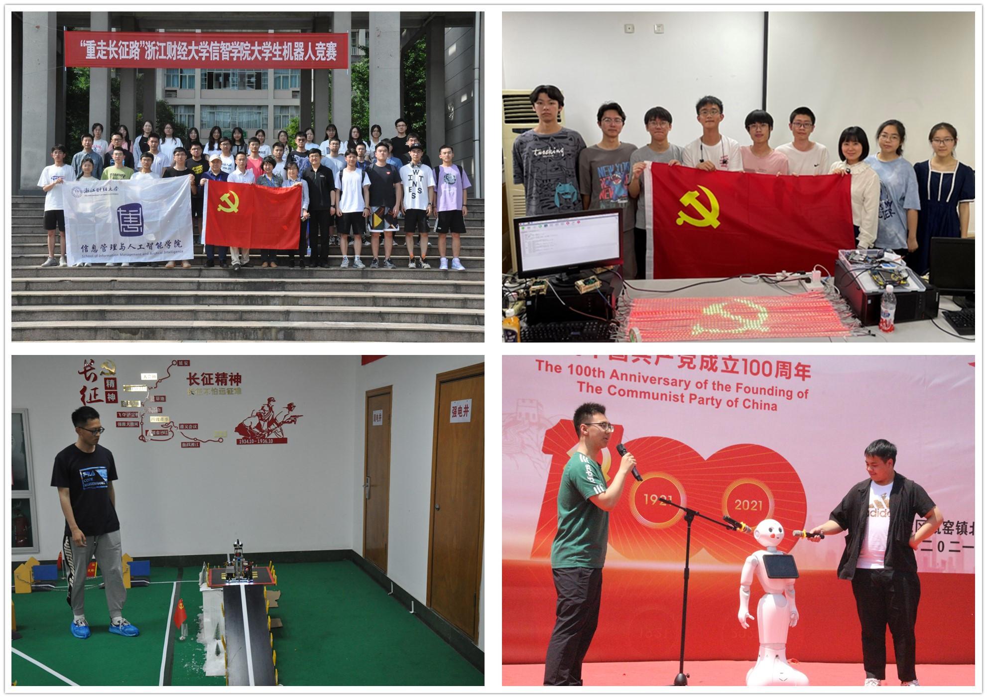 学院党委聚焦专业学习,开展“党建+人工智能”学党史系列活动。将人工智能技术应用于党史学习教育和课堂教学,让大家在增长专业本领的过程中接受党史教育。组织开展“重走长征路”机器人竞赛,开发机器人“信小智”党史宣讲员走进基层宣讲党史。在《智能时代》全校通识课党员教师朱凌带领红心少年们用灯带通过编程,绘出动感党徽,用程序员独有的浪漫方式,向中国共产党成立一百周年献上了自己最美好最热忱的祝福。