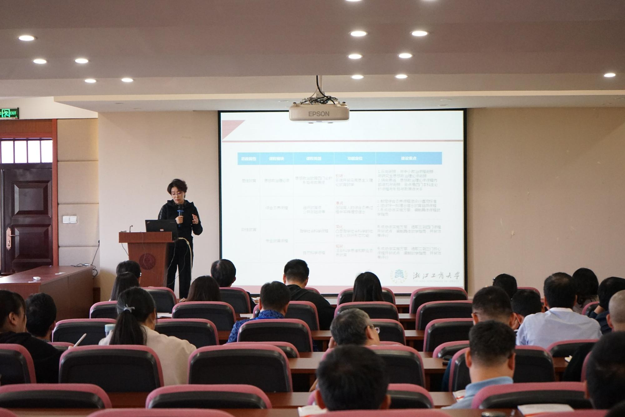 随后,浙江工商大学研究员高燕做了“高校课程思政的评价标准与方法路径”专题报告。高老师指出“课程思政”是将马克思主义理论贯穿教学和研究全过程,深入发掘各类课程的思想政治理论教育资源,从战略高度构建思想政治理论课、综合素养课程、专业教育课程“三位一体”的思想政治教育课程体系,促使各专业的教育教学,都善于运用马克思主义的立场、观点和方法,探索和实践各类课程与思想政治理论课同向同行,形成协同育人效应。同时,高燕通过国内高校在“课程思政”改革方面典型案例的分析,指出在“课程思政”的整体设计、路径与载体、效果评价、保障机制等方面的规范建设和制度支撑相对薄弱,导致教学改革动力不足,教师教学效果良莠不齐,学生对课程的认同度和获得感不均。