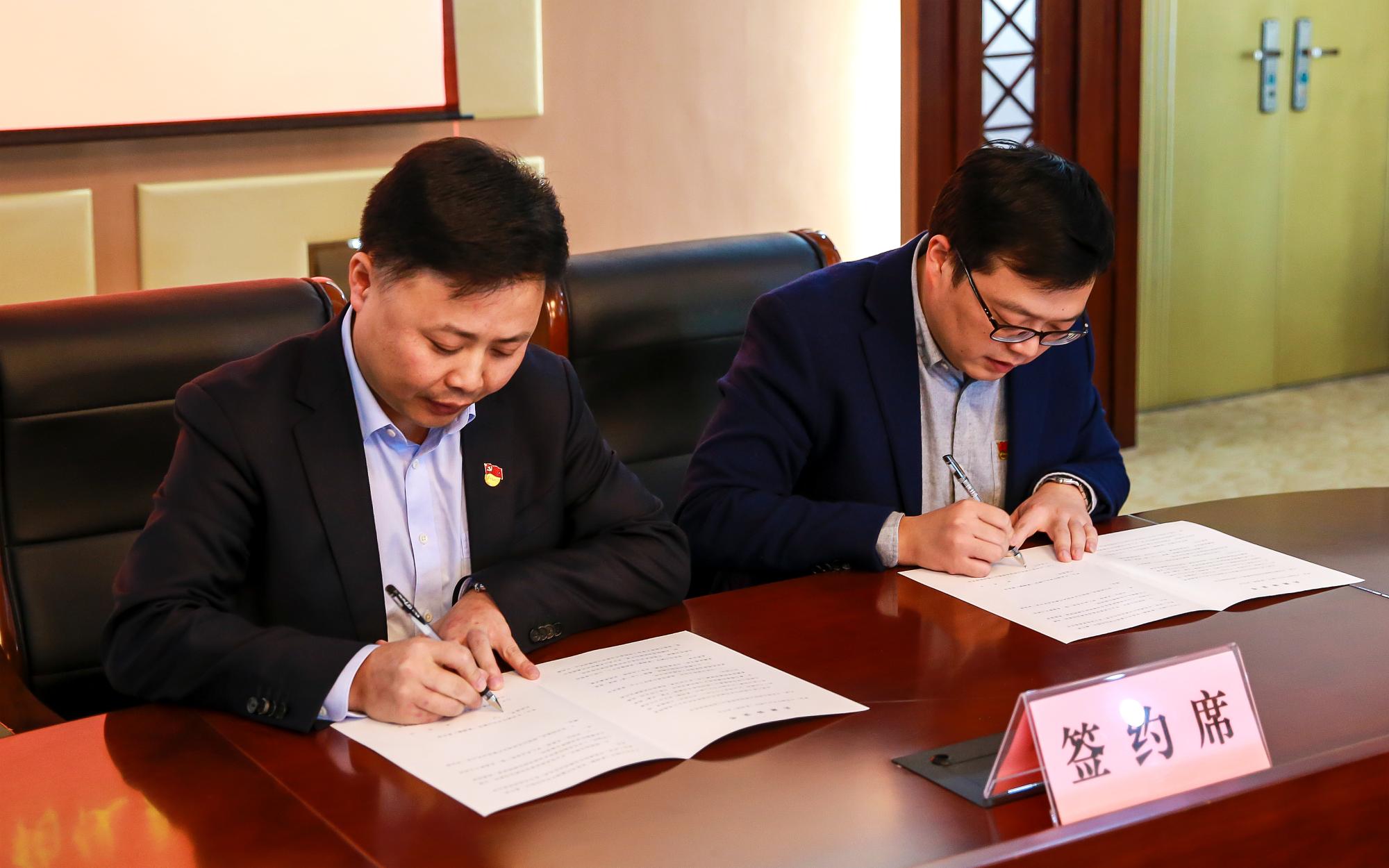 随后,尖山新区(黄湾镇)党委书记董国平与信工学院党委副书记签署党建共建协议书。