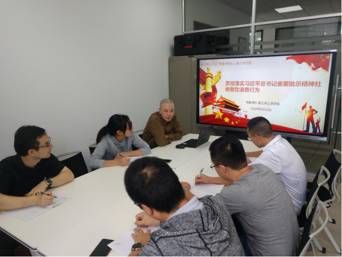 教工第三党支部召开“贯彻落实习近平总书记重要批示精神 杜绝餐饮浪费行为”支部党员大会