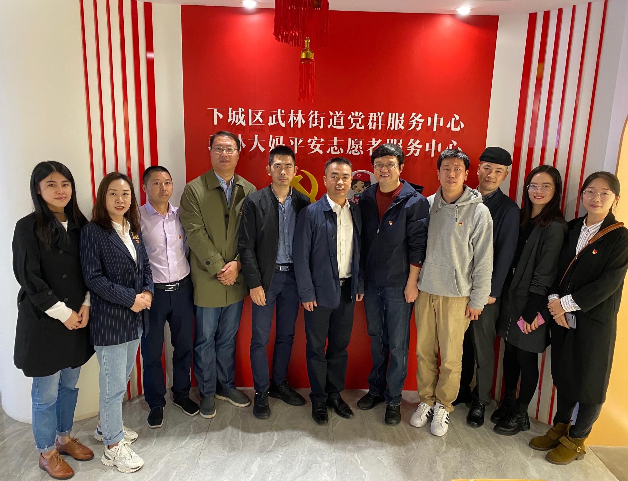党委书记徐奇伟、院党委副书记田聪、教工第三党支部书记杨水清、学办主任李靓和院团委书记毛立晨一行赴杭州市下城区武林街道党群服务中心与武林街道党工委开展党建共建活动。