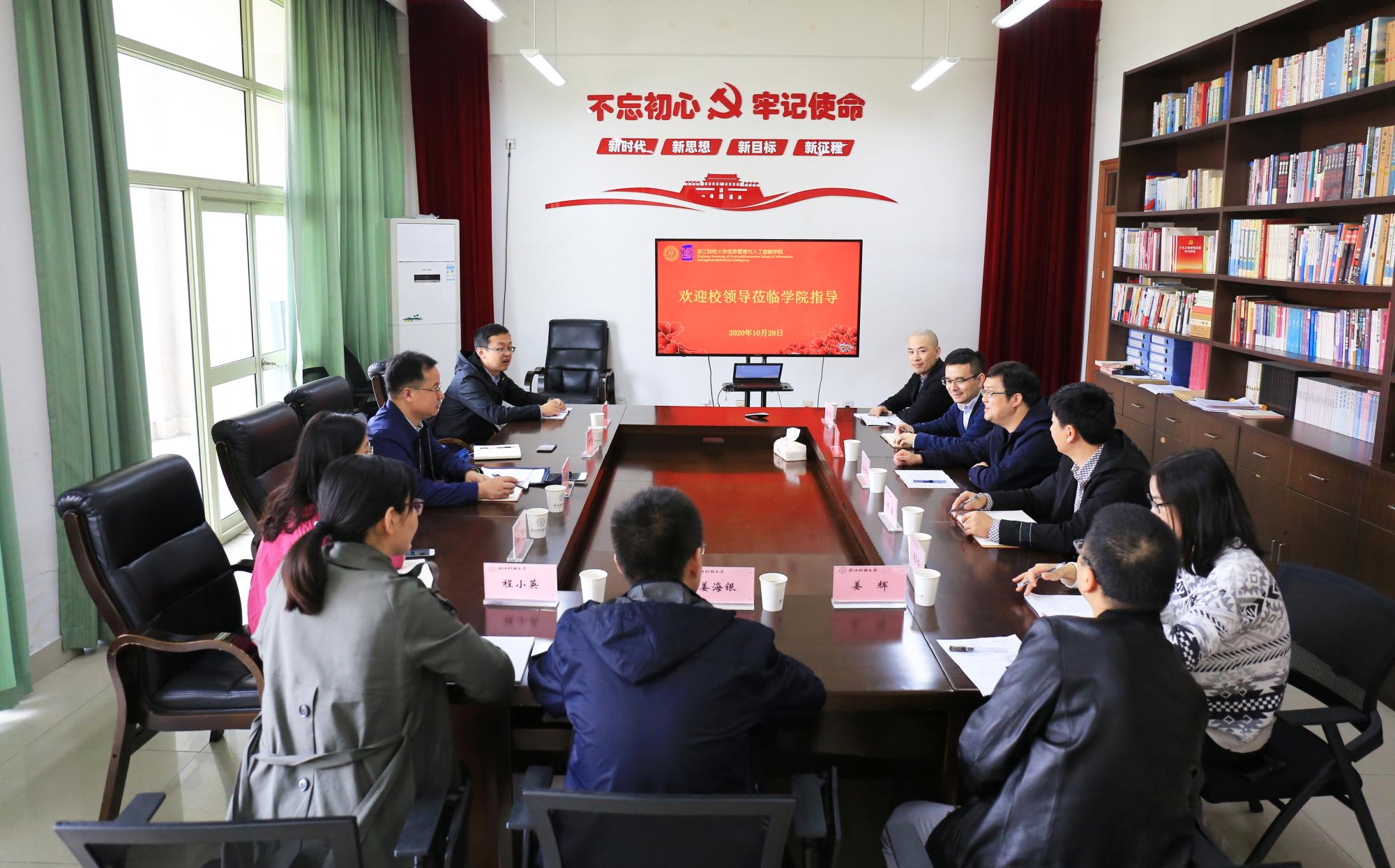 徐奇伟书记代表学院对楼部长莅临学院指导工作表示欢迎,对学校长期以来对学院发展的关心与支持表示感谢,他简要介绍了学院学科、专业、师资队伍、科学研究等等方面的成绩及存在的问题。陈远高副院长重点汇报了学院在人才培养、课程建设等方面的主要成效。田聪副书记重点汇报了学院在学生管理、思政建设方面的主要情况及存在的短板。杨水清老师代表教工第三党支部介绍了电子商务系的主要情况及党支部工作开展情况,会上党支部各位老师纷纷对学校和学院发展提出了中肯的意见建议。