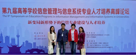 刘凤琴、张洁,揭婉晨和刘维树等四位老师在成都参加第九届高等学校信息管理与信息系统专业人才培养高峰论坛。本届论坛由国际信息系统协会中国分会(CNAIS)和清华大学出版社联合主办,由四川大学商学院和清华大学出版社信息分社承办,本届论坛主题为“新变局新形势下的信管专业建设与人才培养”。