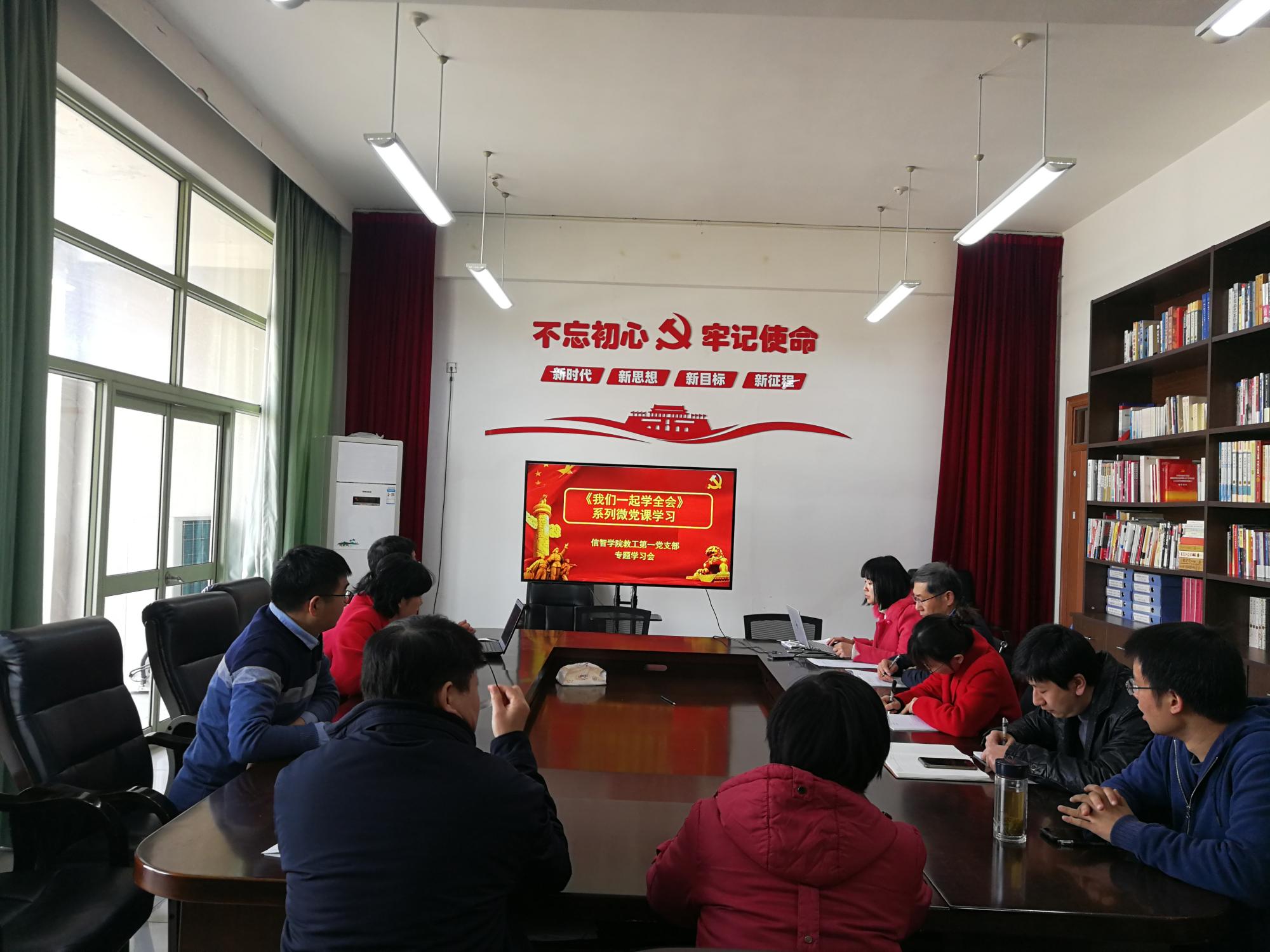 教工第一党支部在9506会议室组织开展“我们一起学全会”系列微党课学习。支部书记朱凌带领支部党员学习了省委组织部策划制作、在时代先锋网推出展播的《我们一起学全会》系列微党课,并组织党员老师进行十九届五中全会精神的研讨交流活动。