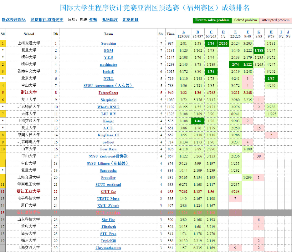 其中,在国际大学生程序设计竞赛亚洲区预选赛(福州校区)中,我校代表队在127支获奖队伍中排名第25名,在浙江省内仅次于浙江大学和浙江工业大学。