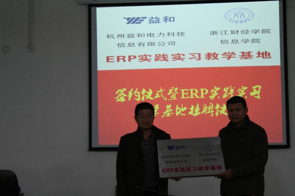 合作共建《ERP实践实习教学基地》启动仪式在学术中心第二报告厅举行。信息学院副院长张文宇教授出席,并和杭州益和电力科技信息有限公司总经理许俊杰先生一起为实习基地挂牌。ERP实践实习教学基地建设的启动,标志着哔咔漫画