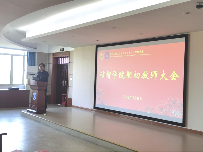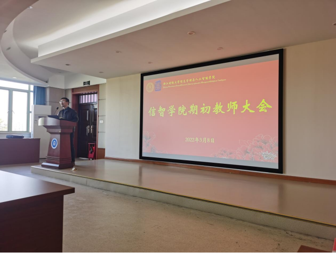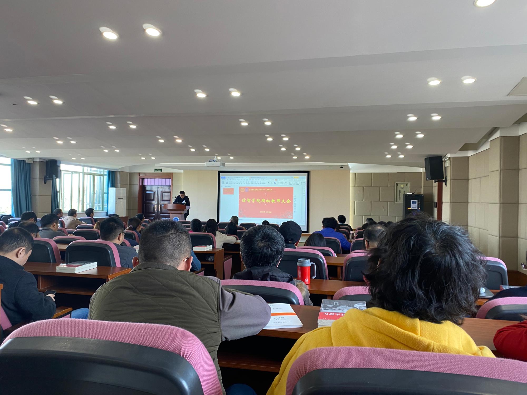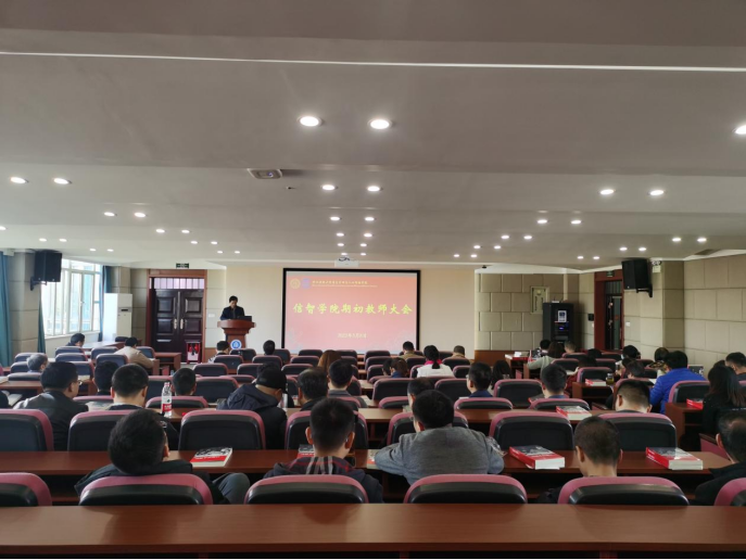 在9302报告厅召开期初教师大会,学院领导班子和全体教职工参加了此次会议。