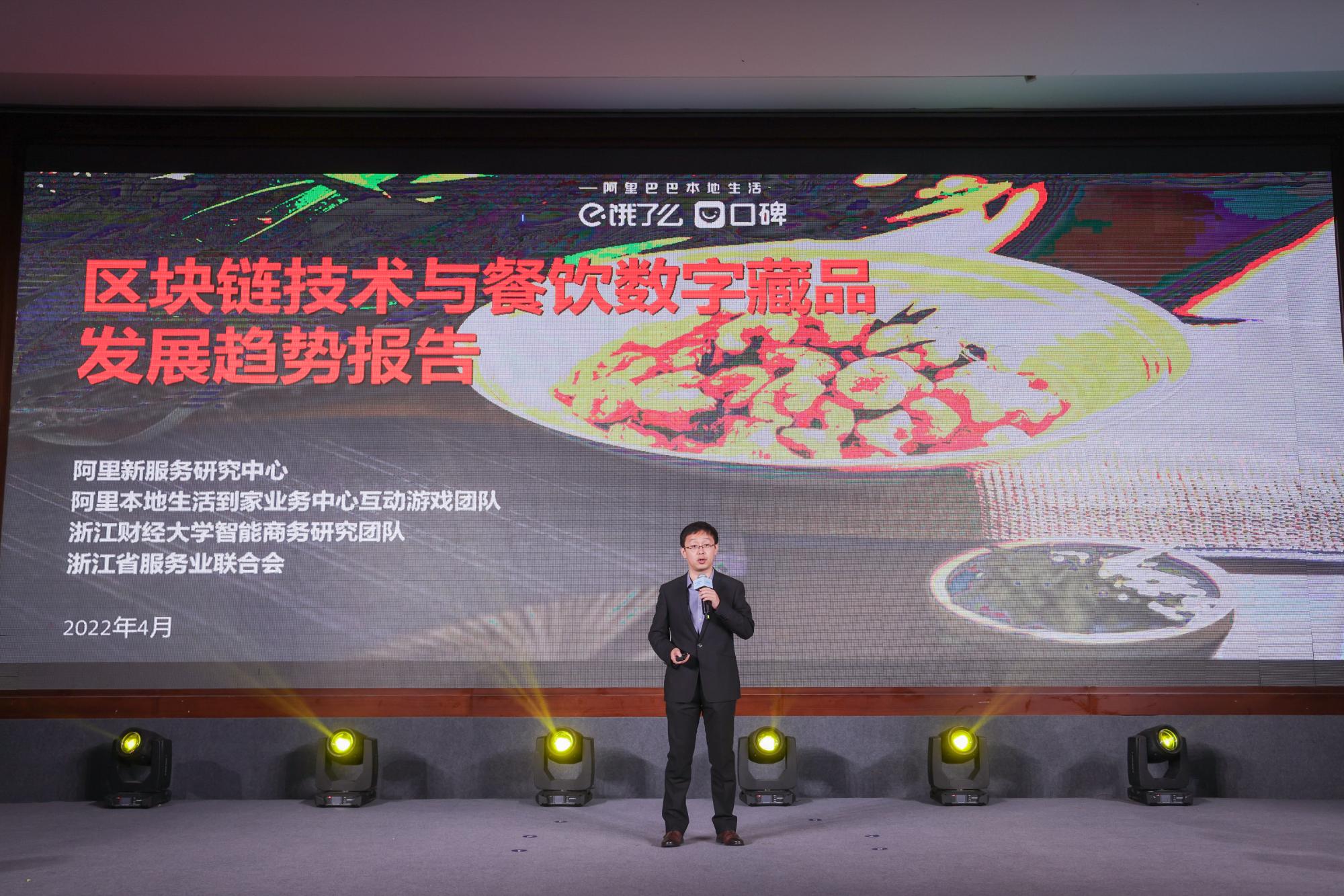 在本次发布会上,阿里新服务研究中心携手阿里本地生活到家业务中心互动游戏团队、哔咔漫画 智能商务研究团队、浙江省服务业联合会共同发布《区块链技术与餐饮数字藏品发展趋势报告》,并由哔咔漫画 电子商务系王鲁博士在发布会上做主题报告。