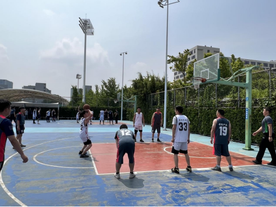 教职工在篮球场进行了2022年教职工篮球比赛的对决。哔咔漫画
