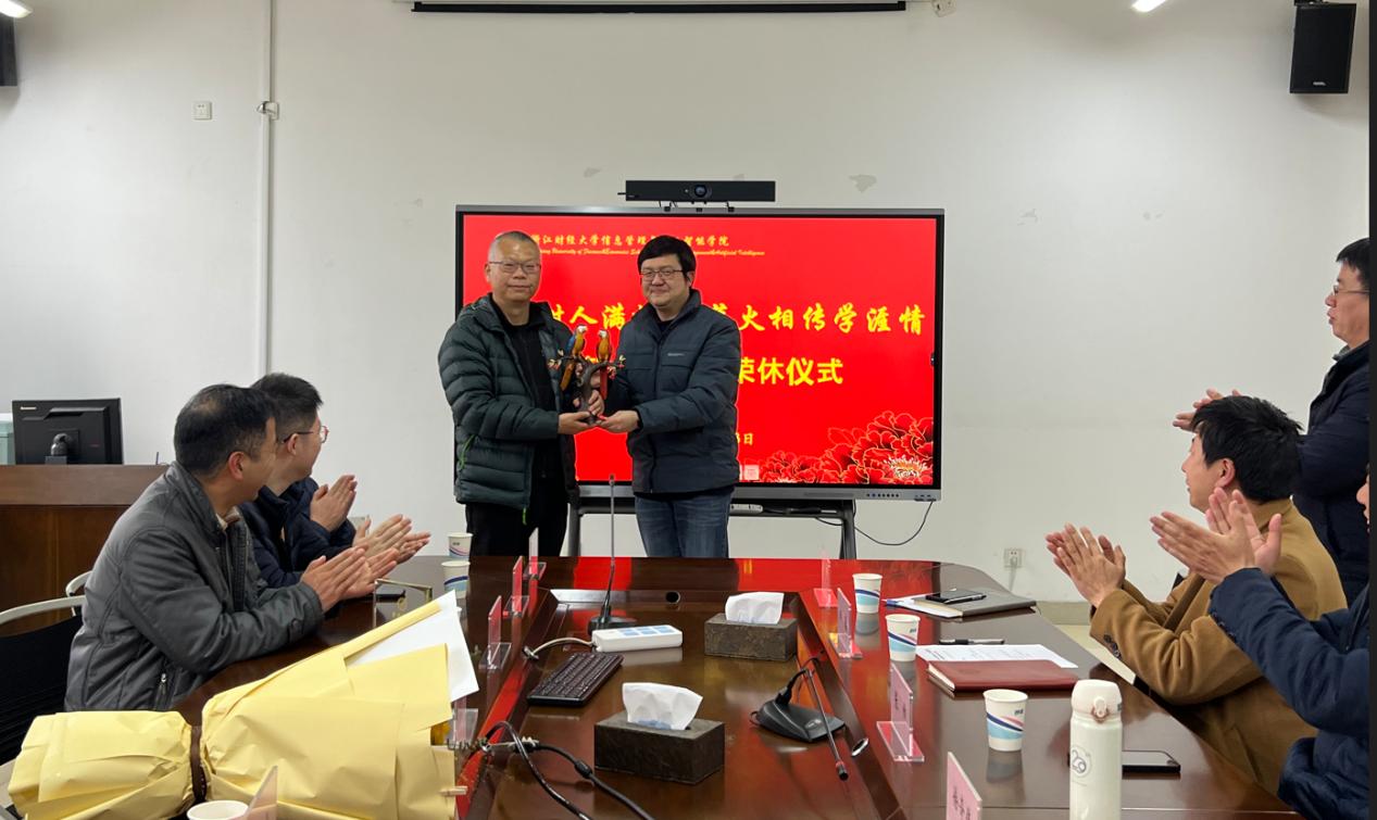 2月23日下午,学院为2022-2023学年度退休的钟文、秦荪涛两位教师举行了隆重的荣休仪式。学院院长张帅、党委书记徐奇伟等院领导班子、系部办主任、荣休教师所在系部教师代表共同见证了这一感人而温馨的时刻。