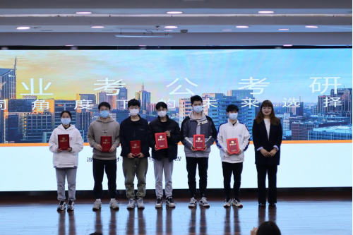 20级升学、就业动员会暨高顿奖学金颁奖仪式在学术中心第四报告厅顺利召开。学院党委副书记田聪,高顿考研浙江分校校长崔亚飞,讲师张斓曦,院团委书记毛立晨,辅导员洪宝华及全体20级本科生参加本次大会,会议由洪宝华老师主持。