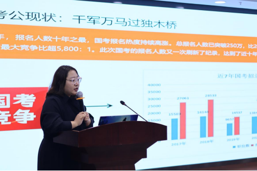高顿教育张斓曦老师就当下考研考公选择、复习计划制定和就业形势剖析给同学们做了专题辅导讲座。
