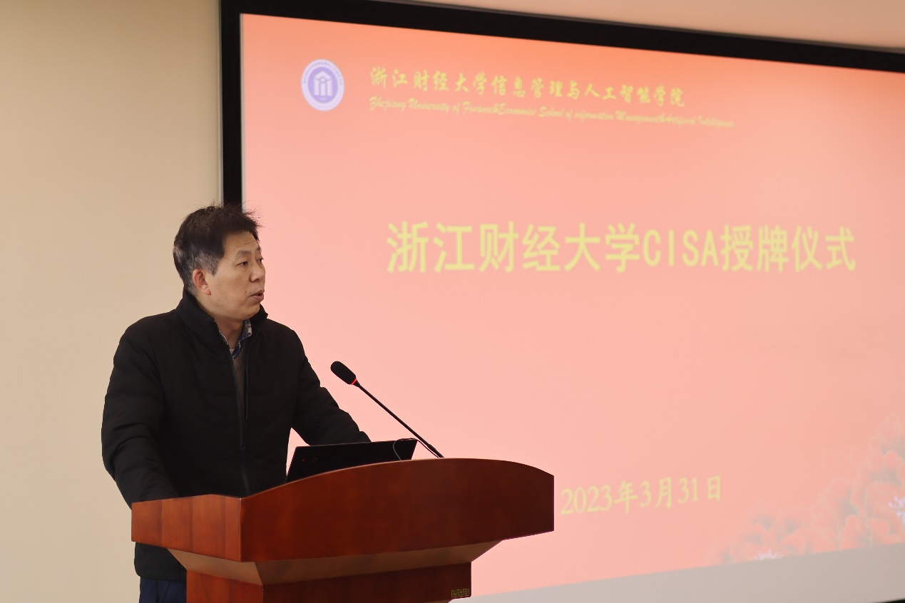 张帅教授发表致辞,回顾学院与ISACA的合作历程和取得的成绩,此次CISA授牌将推动哔咔漫画