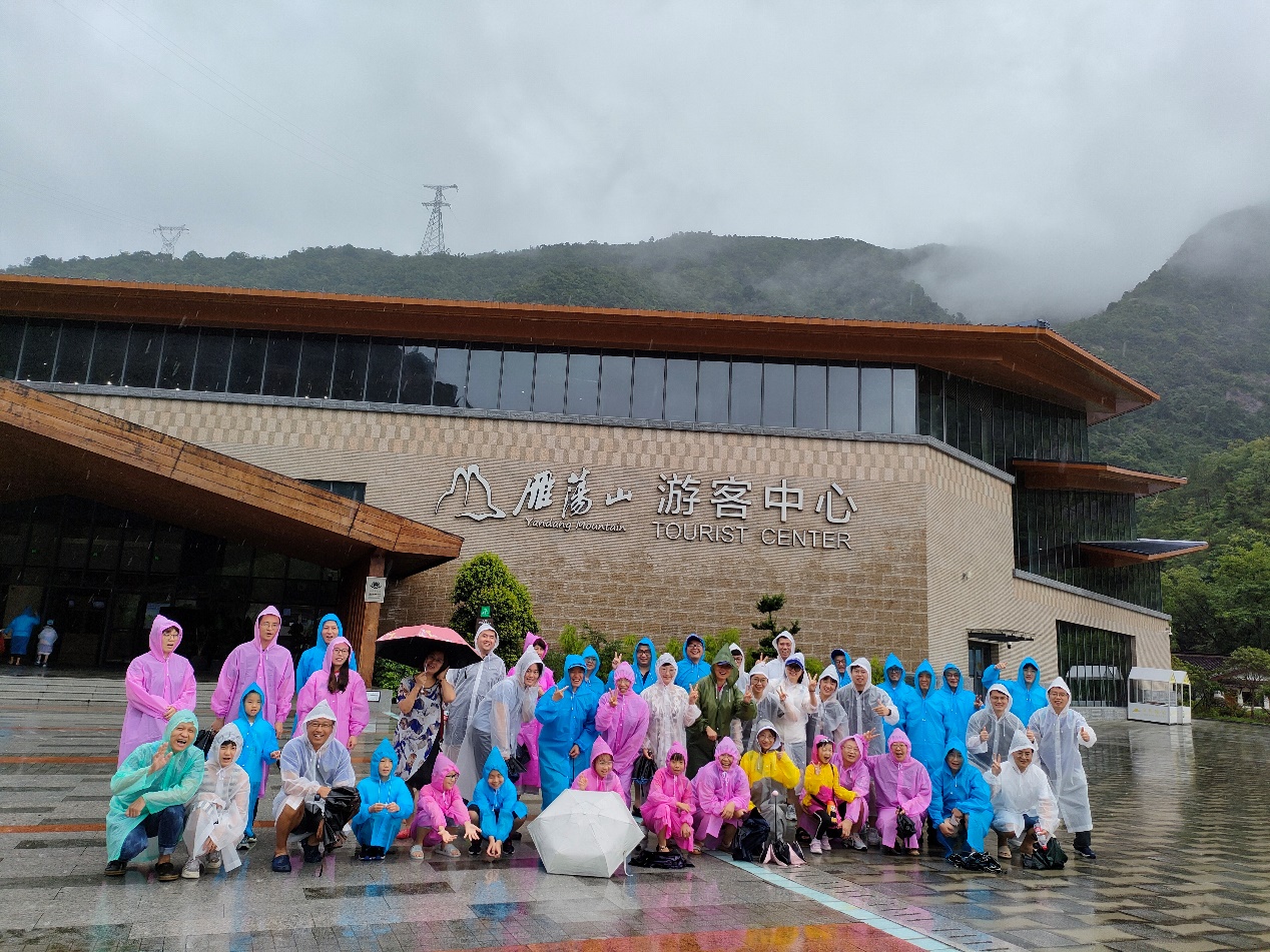 看完海去赶山,教师们来到山水奇秀、天开图画,素有“海上名山”、“寰中绝胜”之誉,史称“东南第一山”的雁荡山。因受“杜苏芮”影响风雨时不时的向老师们打招呼,忽儿磅礴忽儿微弱,时而雨时而晴,但雁荡山的绝美奇特山景,没能阻挡教师们探寻奇美的步伐,大家相互扶持互相关照,前往灵峰、灵岩、大龙湫“雁荡三绝”,沿途是各种奇妙造型的峰峦高耸,有如屏风,又如画卷,丛林中的溪水泛起阵阵涟漪,随着山势的起伏转折,时而湍急,时而静深。瀑布的水流声越来越大,峰回路转,抬头只见郁郁葱葱的树林间隙中,高崖之上,大龙湫瀑布如银龙般飞流直下,美轮美奂,令人a称奇。