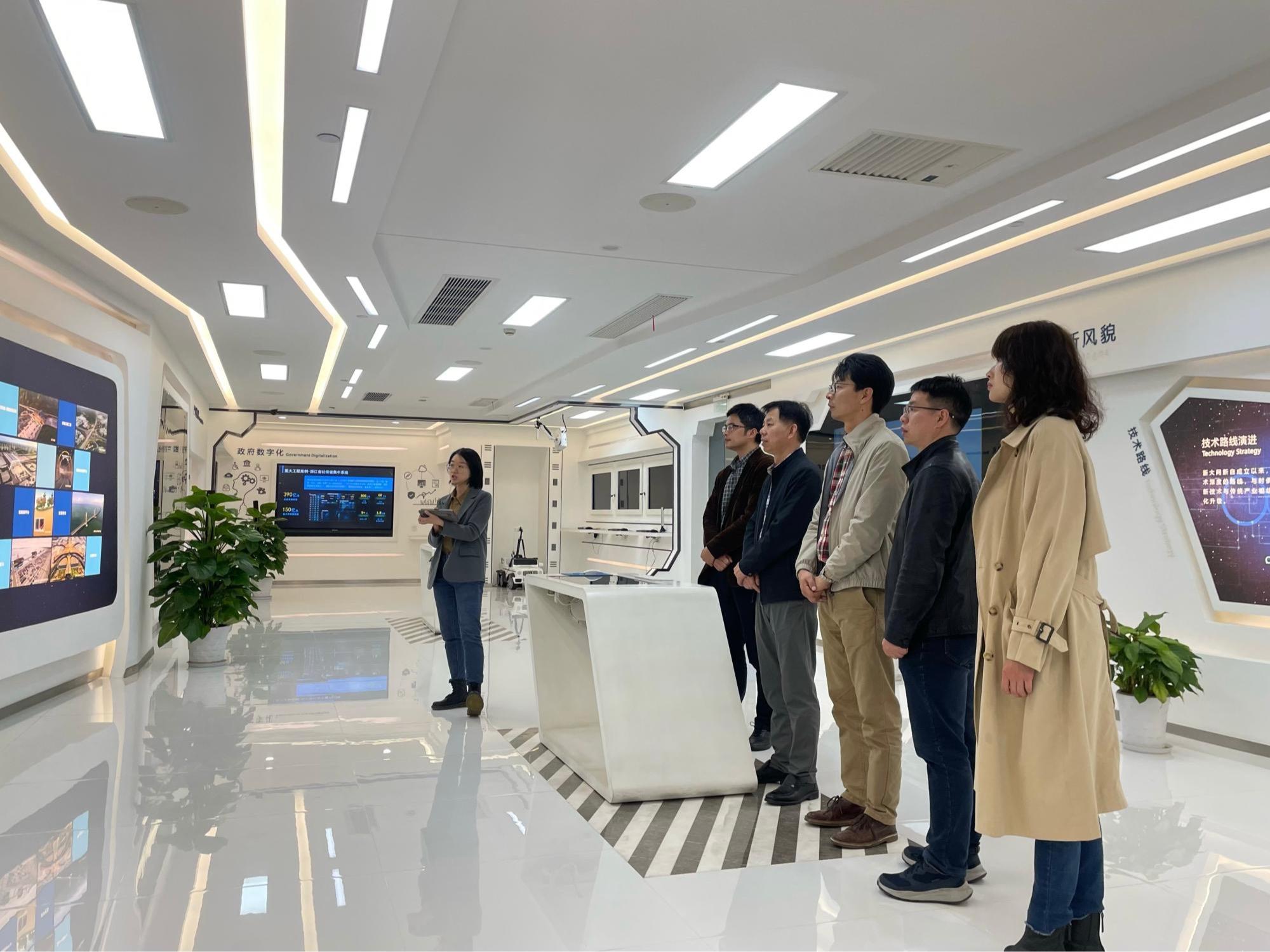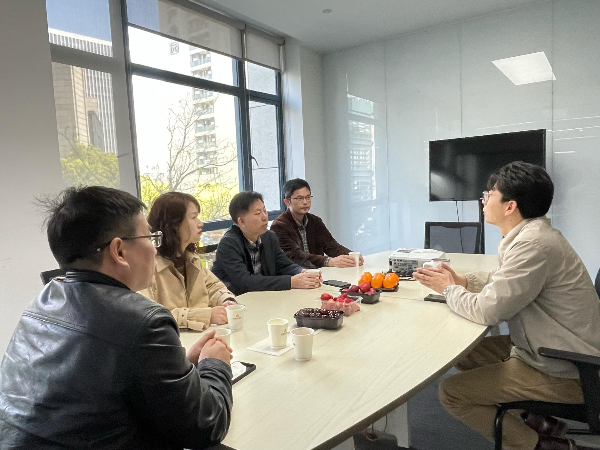 祖浩杰对母校一行的到访表示热烈欢迎,深情回顾了在校期间的学习生活,分享了自己职业发展的心路历程。他详细介绍了公司的发展历史、业务范围、创新成果、未来布局等情况,以及公司在整合人工智能、区块链、云计算、大数据等技术,赋能数字化政府、数字化基建、数字化产业方面取得的成果。他表示,学校近年来的快速发展为校友们提供了强大的后盾,十分感谢母校的栽培,期待以此为契机探索校企合作新路径。