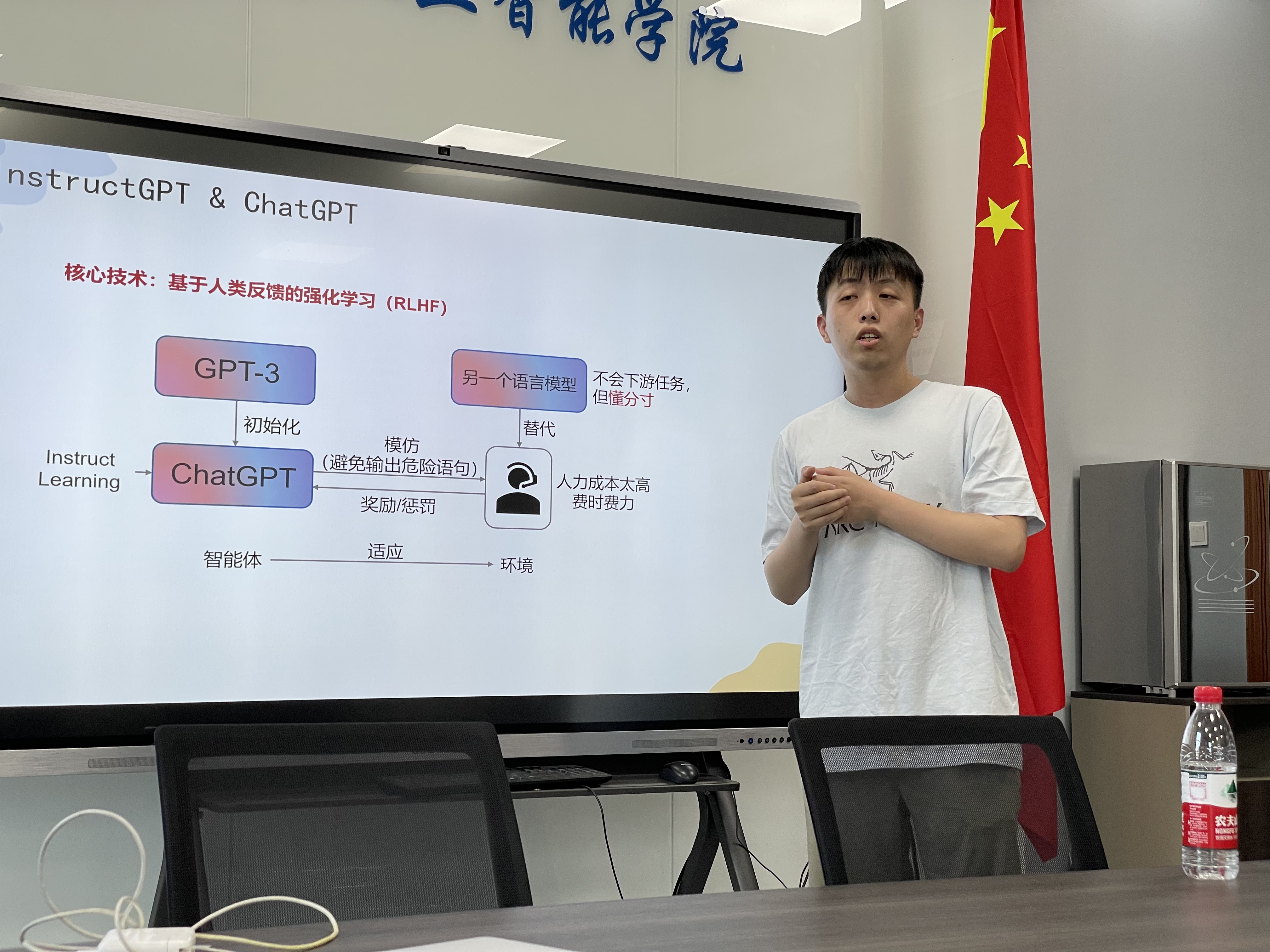 在9-404举行了“大模型技术浅析及应用”的知识讲座。本讲座由东南大学博士生吴春琦主讲,陈琰宏老师主持,近30名研究生参加参与了本次讲座。