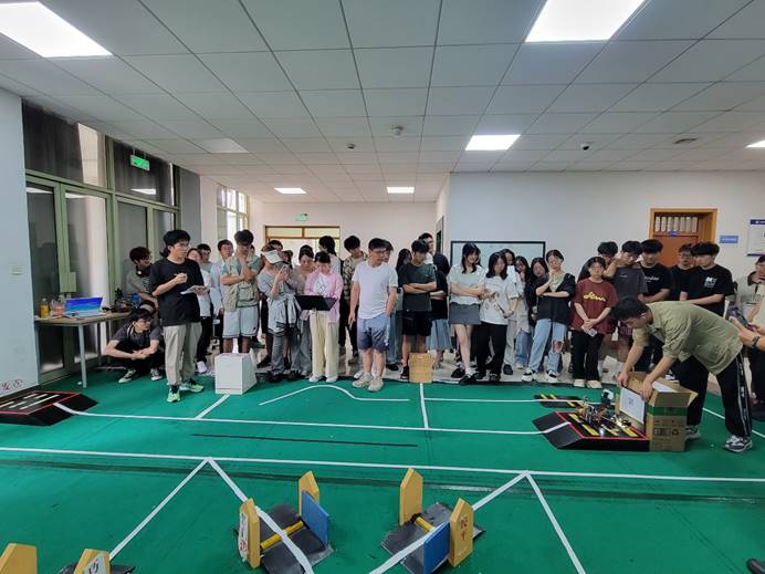 竞赛现场气氛热烈,参赛队伍们也充分展示了他们的团队协作能力和创新精神。他们通过精心的设计和调试,不断优化机器人的性能,使其在比赛中发挥出最佳状态。