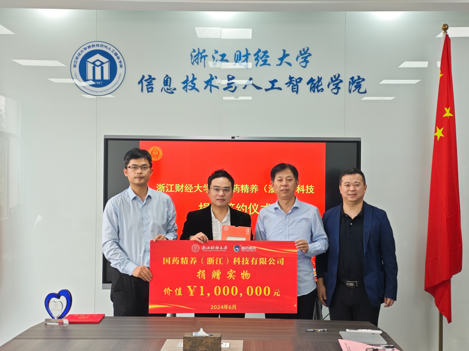 院长张帅、党委书记吴翼泽签署物资捐赠协议,并接受捐赠支票。吴玻、张帅还为金皇飞颁发捐赠证书和产业导师聘书。