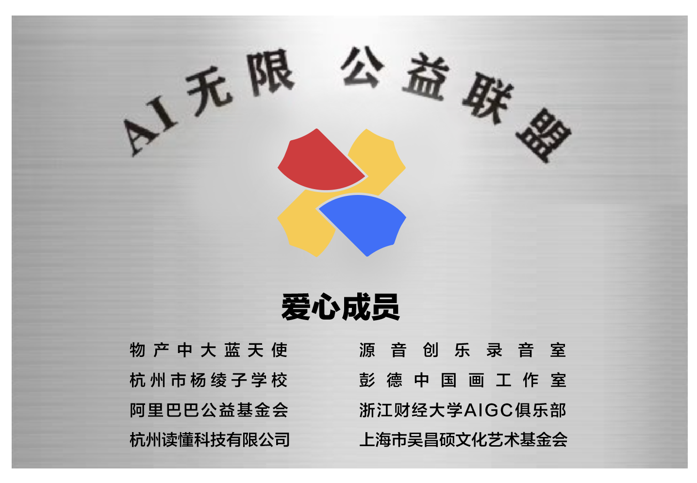 AIGC俱乐部积极与阿里巴巴公益基金会、物产中大集团“蓝天使”志愿服务队、杭州读懂科技有限公司、源音创乐录音室、上海市吴昌硕文化艺术基金会,以及彭德中国画工作室等多家单位,共同发起成立“AI无限公益联盟”,旨在通过AI相关培训,提升心智障碍儿童必要技能,使他们能自主生活并有尊严地融入社会。