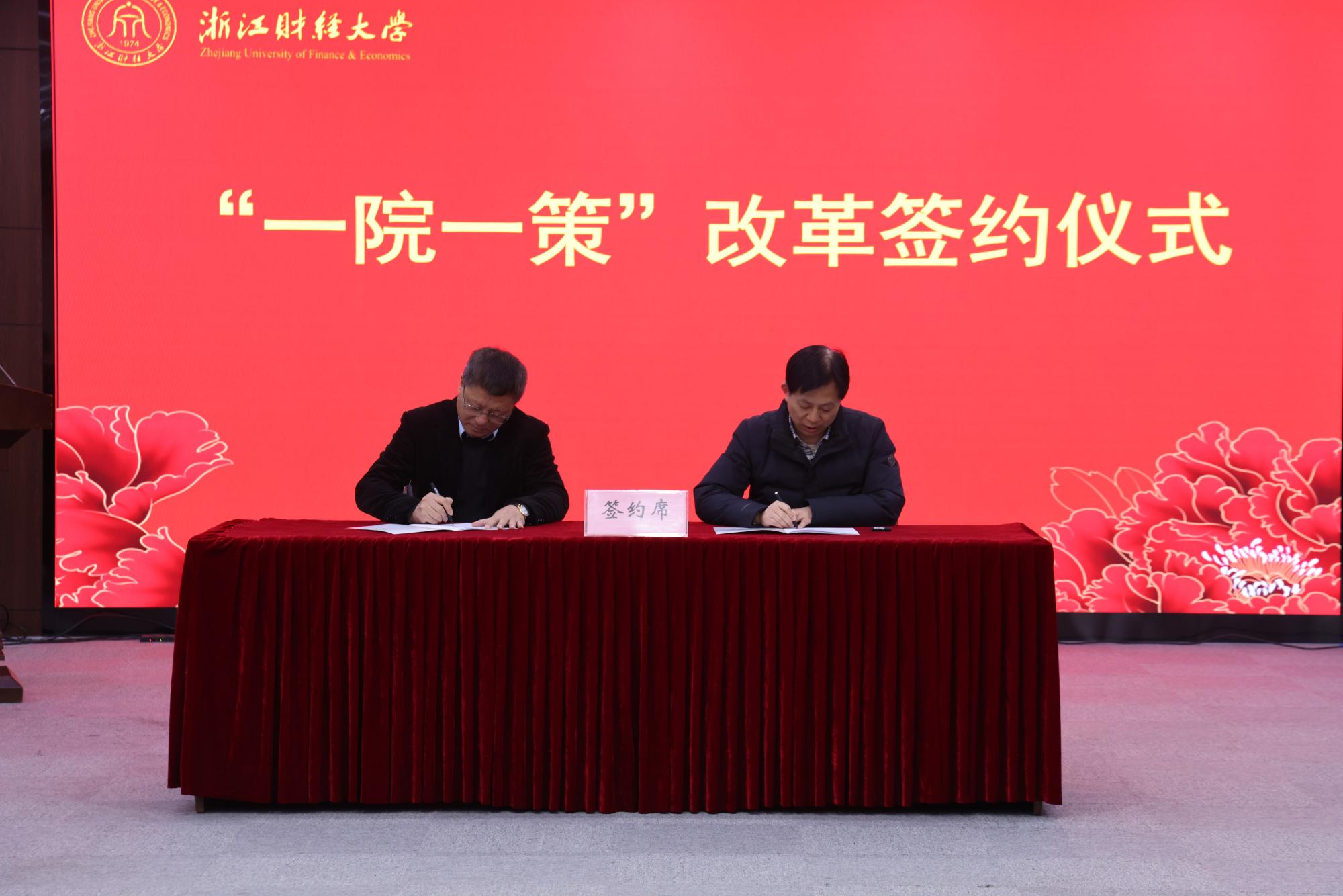 2024年5月,学校发布《“一院一策”改革工作规范》《关于申报“一院一策”改革工作的通知》,学院积极响应,率先申请提交了《“一院一策”改革方案》,经过校院两级多轮磋商达成共识,并于今年年初顺利通过学校深改委会议审议和党委会审定,成为学校“一院一策”改革的先行者。此次签约仪式的成功举行,标志着学校首个“一院一策”改革项目正式启动实施,也标志着学校在落实落细“新财经战略”、赋能学院自主特色发展方面迈出了坚实一步。