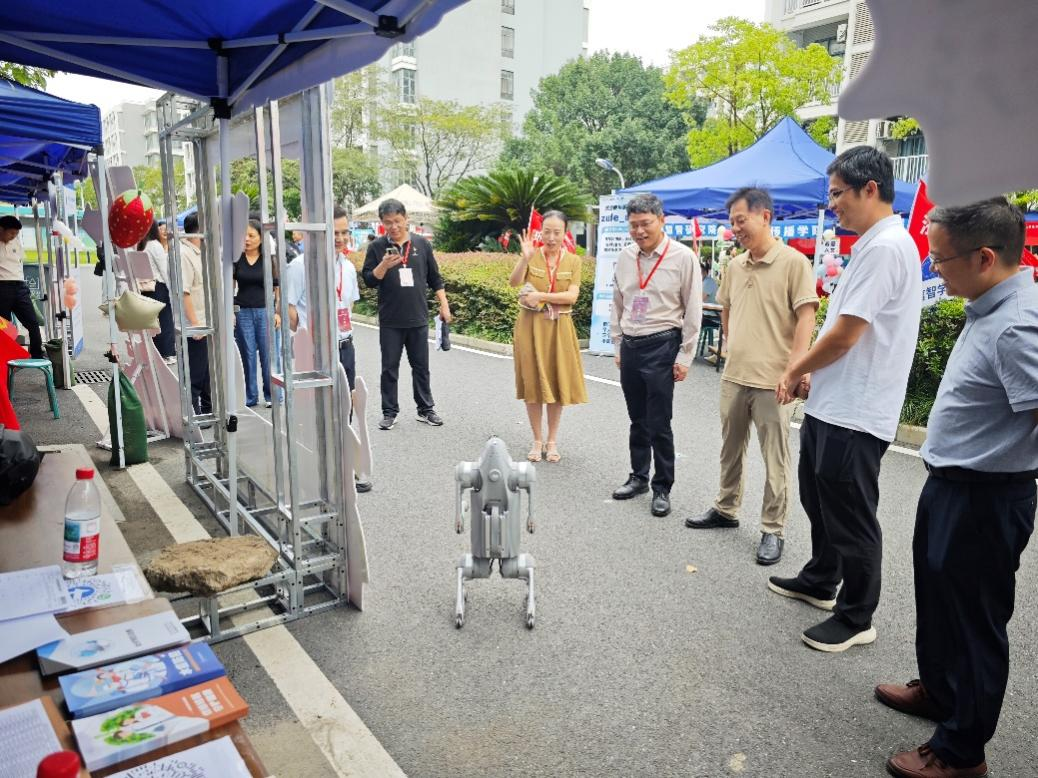 的智能机器狗表演吸引了大批新生和家长驻足,其灵活精准的表演不仅展现了学院在人工智能领域的技术实力,更以生动有趣的方式让新生感受到智能科技的魅力。