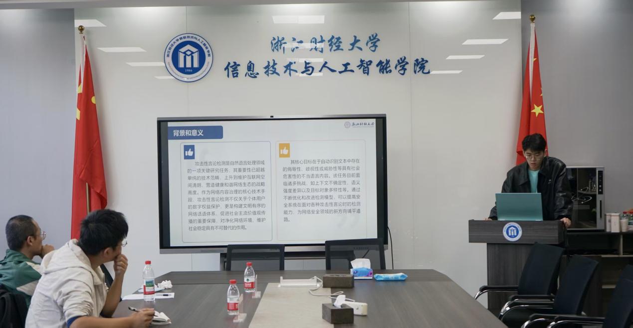 程天鹏同学围绕《基于大语言模型的攻击性言论及目标检测的方法研究》,利用思维链及提示词工程设计多重提示,通过多提示组合方法引导大语言模型进行多视角语义分析,最终实现高效准确的攻击性言论检测。