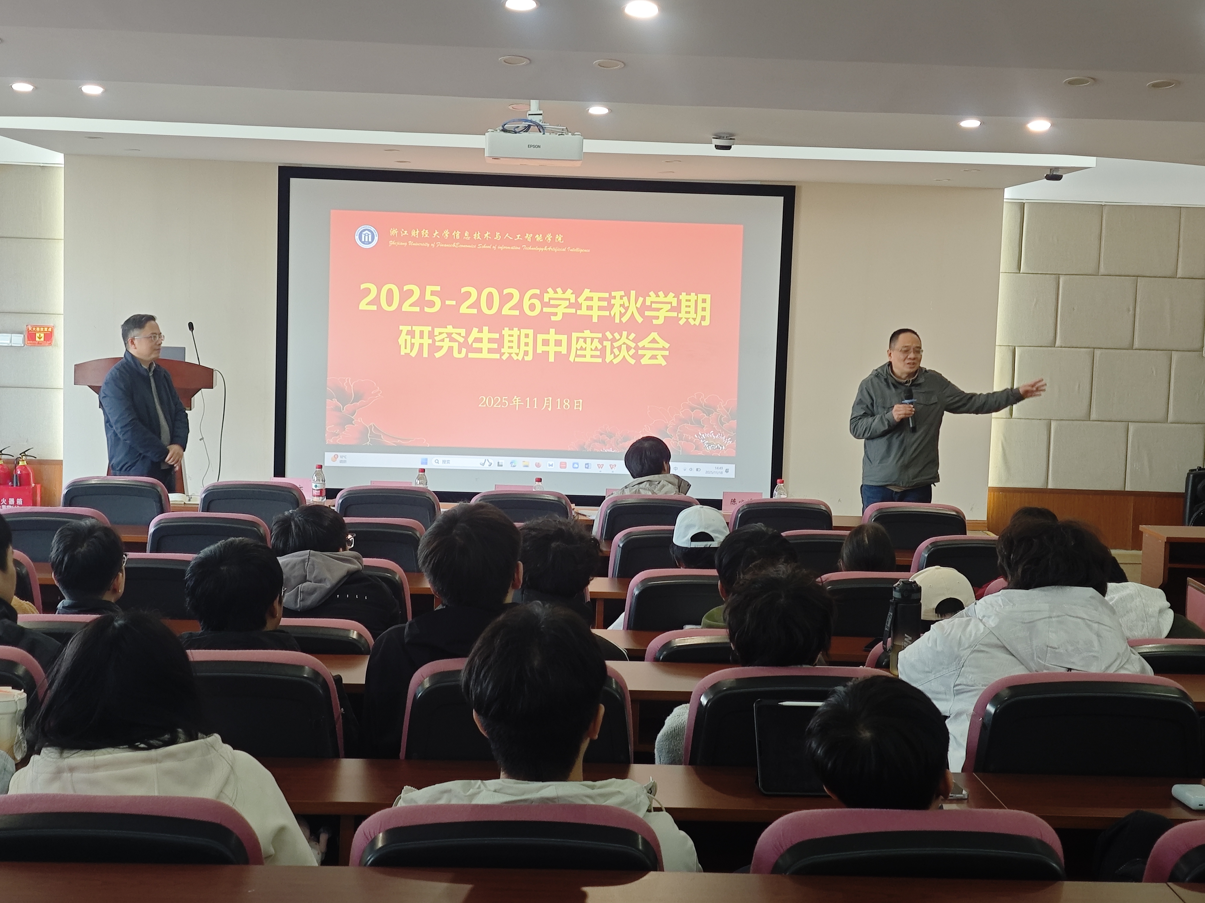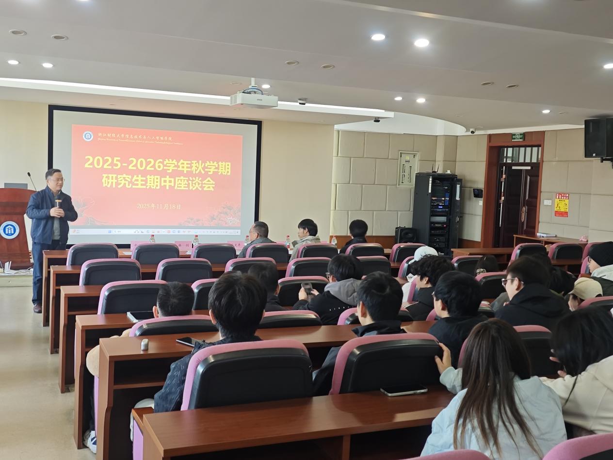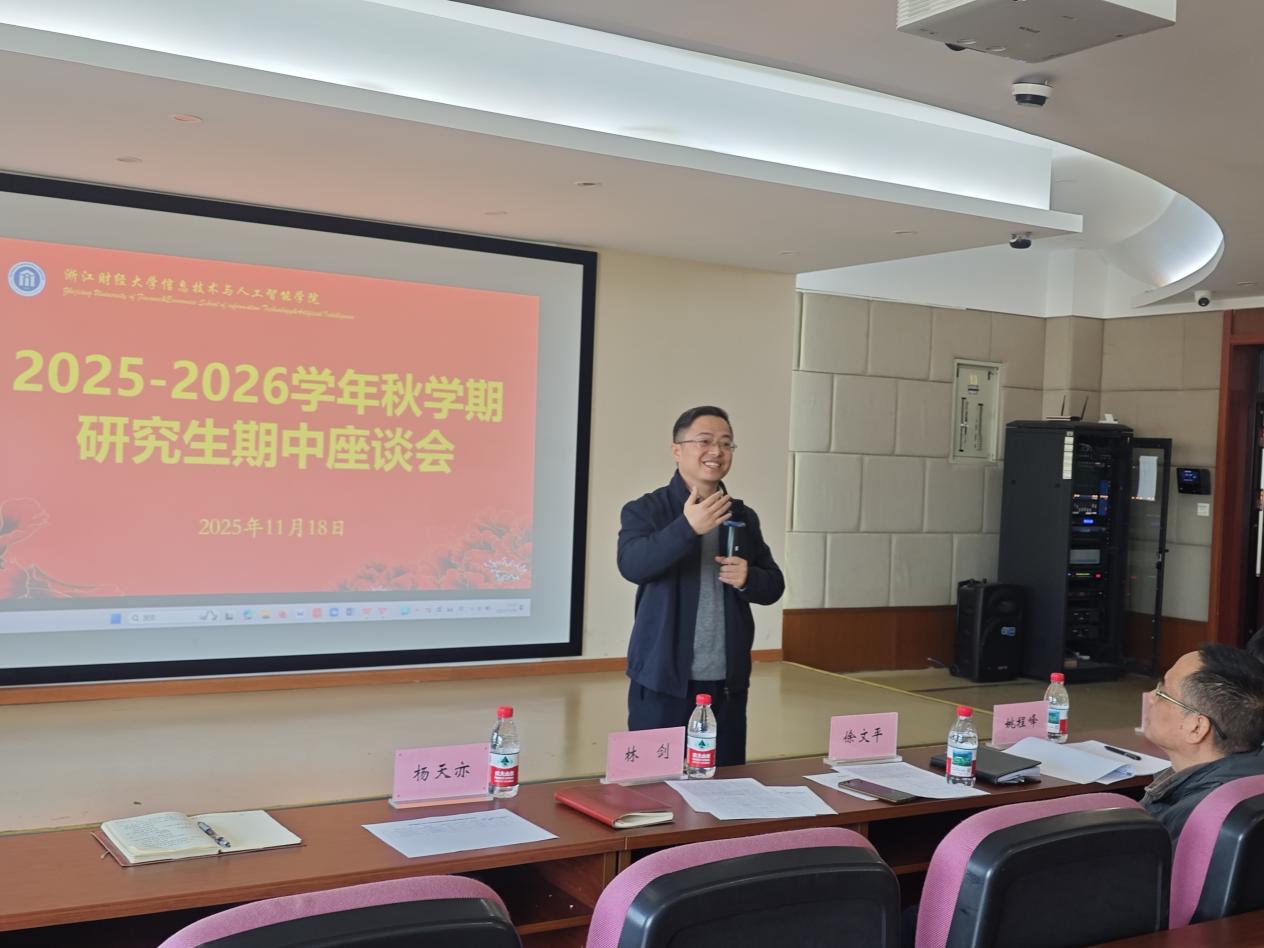 在9号楼302会议室顺利召开2025-2026学年秋季学期研究生期中座谈会。学院副院长林剑教授主持会议,学校研究生教学督导组徐文平教授、研究生秘书杨天亦、辅导员陈心远及2025级全体硕士研究生、博士研究生共同参会。