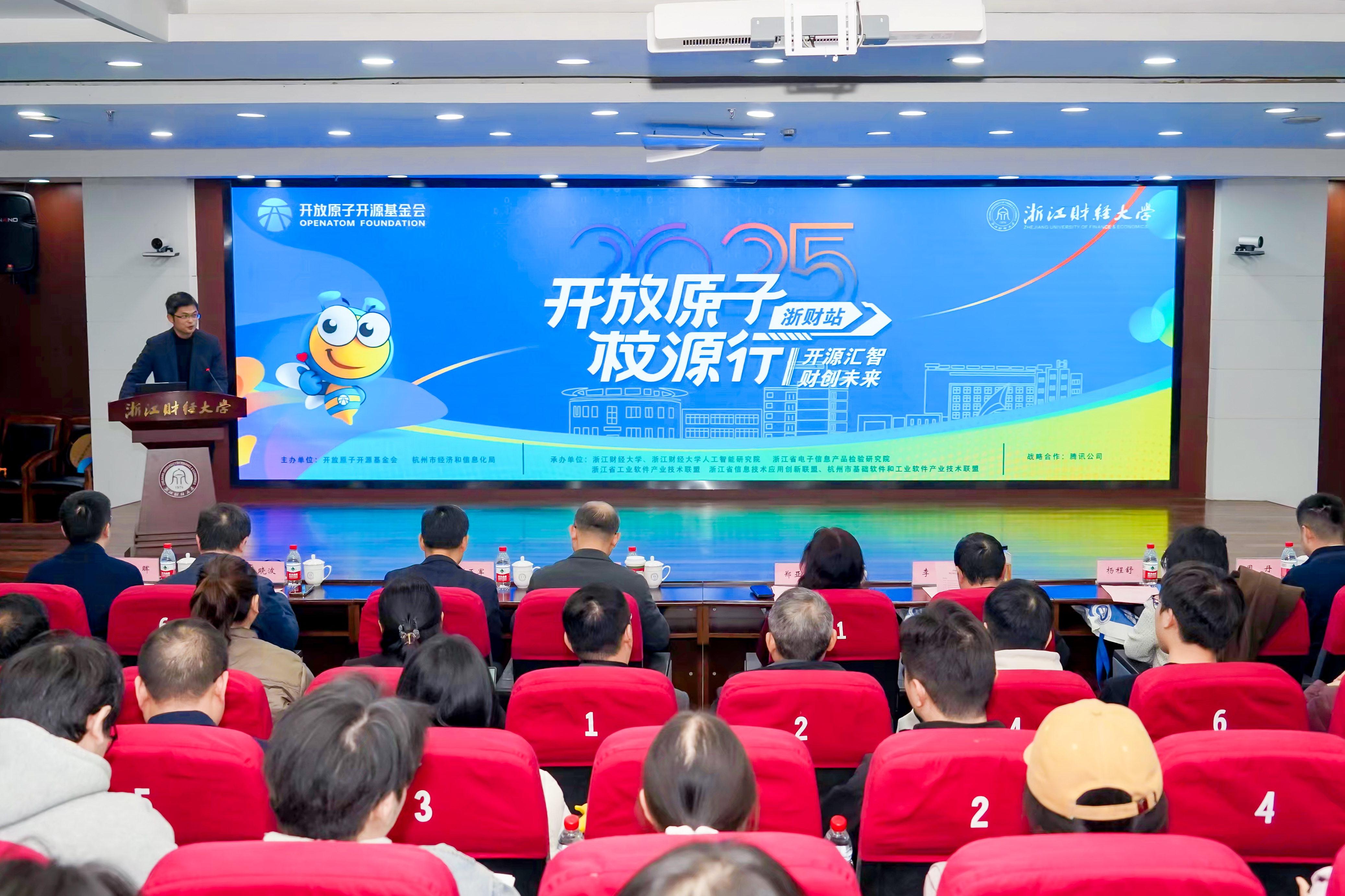 黄左彦在致辞中指出,本次活动为杭州探索“开源+财经教育”融合新路径提供了有益尝试,也为全市以开源教育实践推动创新人才培养注入了全新动能,杭州将持续优化专项政策支持体系,推动校企合作从“合作”向“共育”再向“共创”升级。