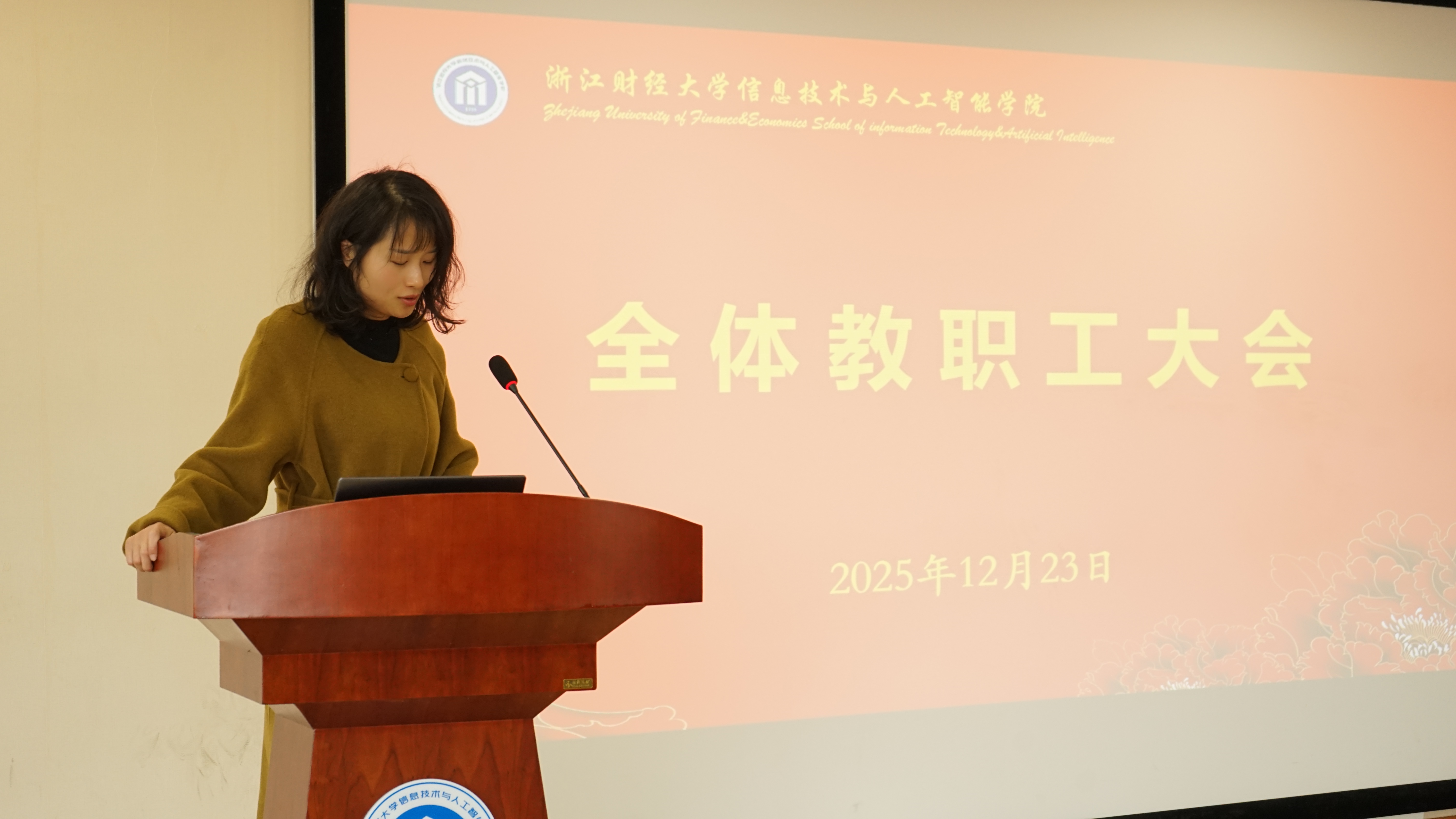 期末全体教职工大会在9号楼302报告厅顺利召开。会议深入传达学习学校近期工作精神,全面总结学院2025年度各项工作成效,并对期末重点任务进行部署。学院领导班子成员及全体教职工参会,会议由学院党委书记吴翼泽主持。