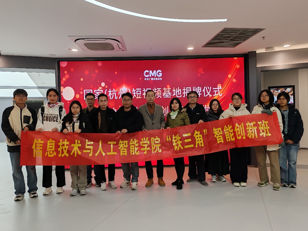 2025年12月30日,信智学院“铁三角”智能创新班师生一行赴国家(杭州)短视频基地余杭创作运营中心,实地参观调研杭州云爻文化科技有限公司,并围绕AI短视频领域的师资培训、实践教学基地等议题开展深入交流与合作洽谈。