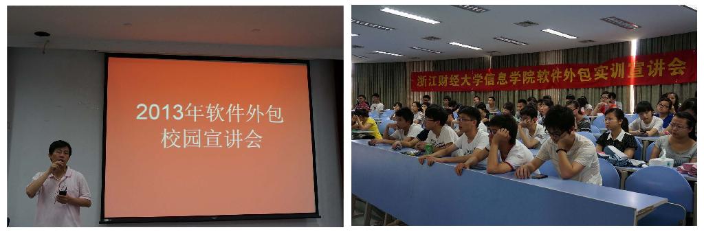 为了加强学生工程实践能力的培养,为同学们搭建软件外包实训实习平台,6月18日下午信息学院在A-201举行了“2013软件外包实训校园宣讲会”。浙大网新和杭州归谷两家知名的软件外包实训机构应邀作了宣讲,宣讲会由信息学院副院长张帅老师主持。