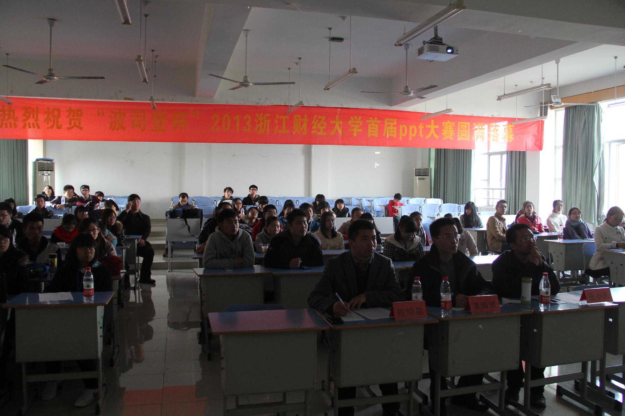 首届PPT大赛决赛在9-302隆重举行,同时邀请到了陈明晶、应小凡、姜海银三位老师担任了本次比赛的评委。