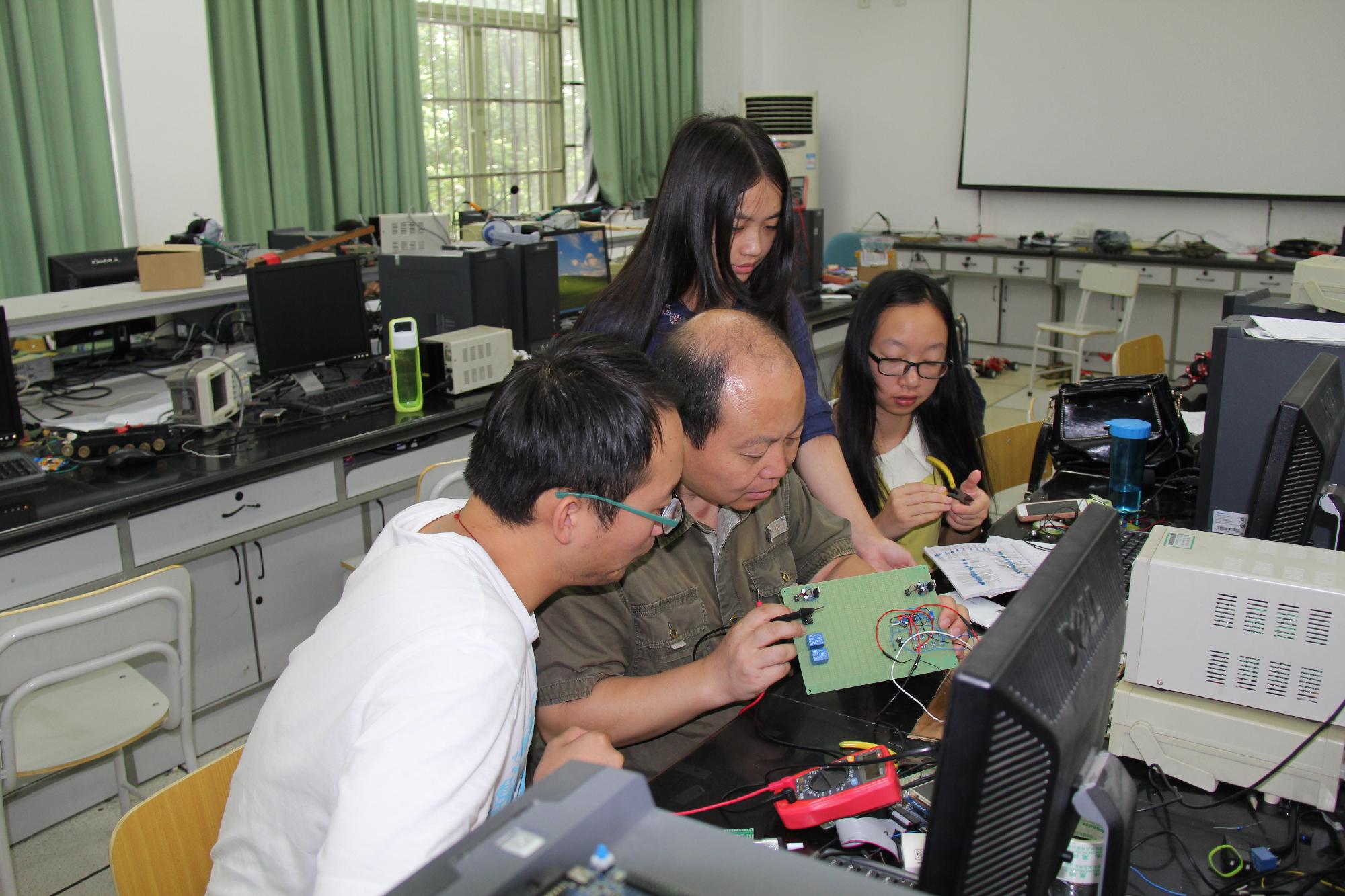 7月21日, 暑期还未过半,学院计算机专业的很多同学们就早早地回到学校来参加由学院潘峰老师免费为学生开设的电子设计课程集训。长期以来,潘峰老师兢兢业业,为了提高同学们的竞赛能力和水平,甘愿牺牲自己的暑期时间,每天在实验室里为同学们一一耐心地解答实验过程中遇到的问题。