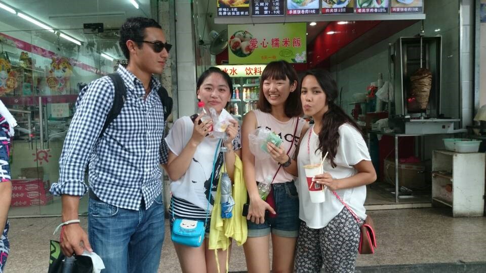 后来,我们得知他们在课程结束以后会兵分几路,有的继续在中国感受古老的文化和快速发展的碰撞,有去北京的、西安的、成都的,有的则会去泰国继续他们的东南亚之旅,但是无论怎样我们都会继续联系彼此,大家知道了用Whats app聊天,美国学生开通了微信,还给我们点赞。晚一些的时候brianda教我们跳太空步,虽然我实在不开窍没有学会,但这并不妨碍我和他们的交流,我们的交流方式越来越多了,不会表达的单词可以用手比划,可以用象声词,甚至后来可以意会!真的是越来越有默契。当指针指过12点,有人陆陆续续回寝室,美好的夜晚就这样过去了。