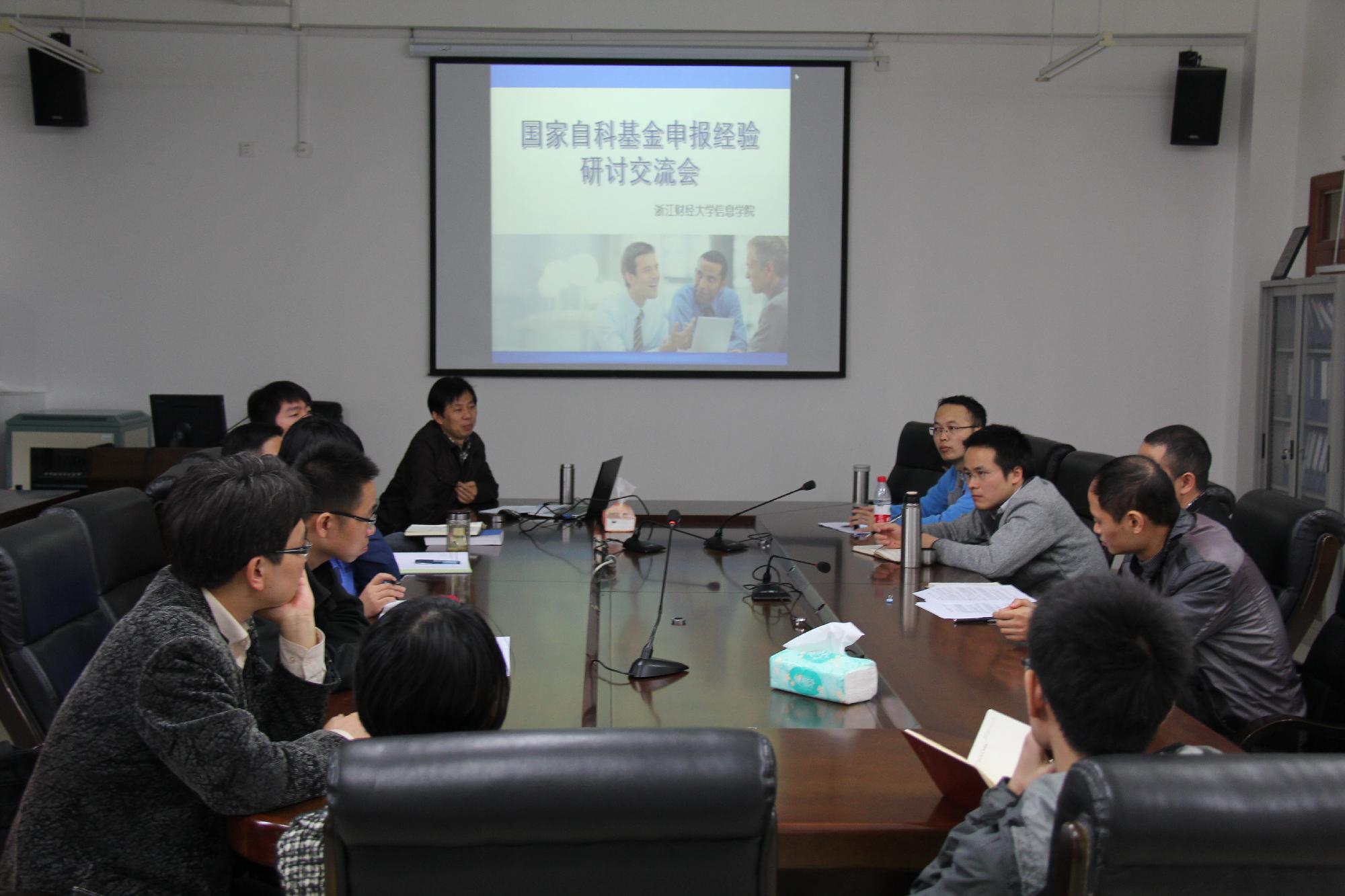 在学院楼404会议室举办了2015年国家自然科学基金项目申报交流会。此次交流会由副院长张帅副教授主持,王周敬教授、李一啸副教授、杨水清博士等分别分享了自己在基金申报中的心得体会,信息学院及其他兄弟学院20余名科研骨干教师参加了此次交流会。