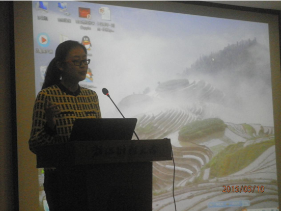 最后上台的是袁慧莉学姐,学姐的经历也丝毫不逊色于两位优秀的学长,不仅学习成绩优异,而且屡获竞赛大奖,课外经历也很丰富。学姐向我们分享了她的一些人生感悟,学姐说我们应该感谢生命中的每一次挫折,这些挫折让我们学会反省,进而能成就更好的自己。