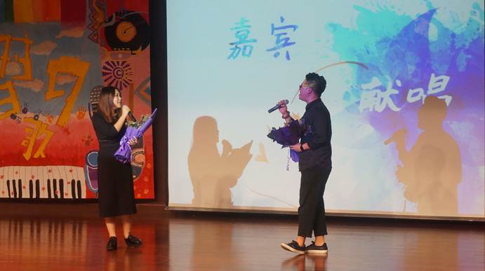 在如此精彩的比赛之余,更有学姐学长的倾情献唱,一首《屋顶》,让大家陶醉其中。