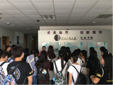 2016921日,信息化实验室主任章华老师带领2016信息1班全体同学参观了信工学院学院楼。章老师生动细致地向同学们介绍了信工学院与信息专业的历史。在他的介绍下,同学们认识到作为信息人,需要掌握高超的技术,高尚的道德,求知的精神同学们需要在大学中修炼这一切,将之内化为本身所有之物。