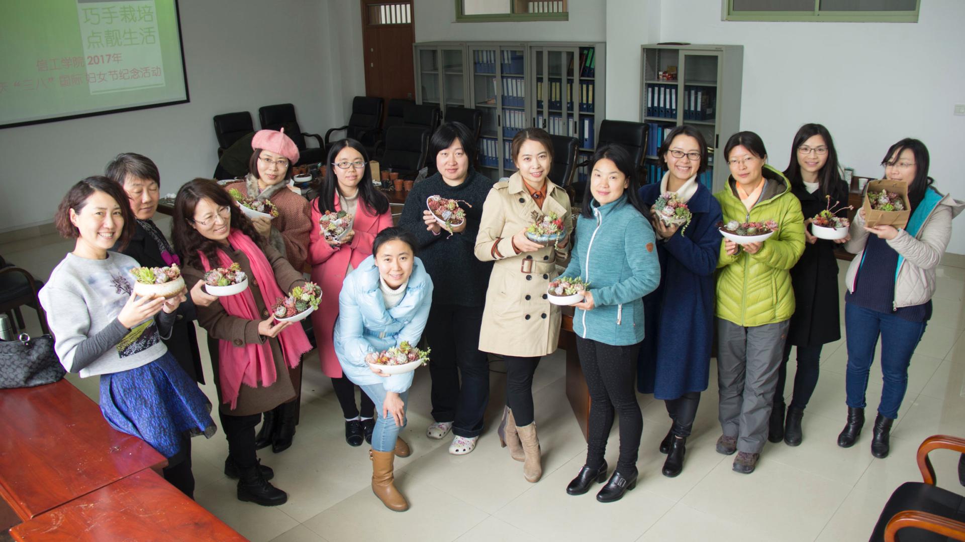 女教职员工爱岗敬业,锐意进取的工作热情,更好地展现女同胞们健康向上,充满活力的精神面貌,充分发挥“半边天”的智慧和力量,在校行政的大力支持及工会的精心组织下,信工学院开展了主题为“巧手栽培,点靓生活”的多肉种植活动,希望在这个属于世界妇女的节日里,让我们的女神们放松一下、浪漫一下、通过自己的创意尽情地抒发自己的情怀。