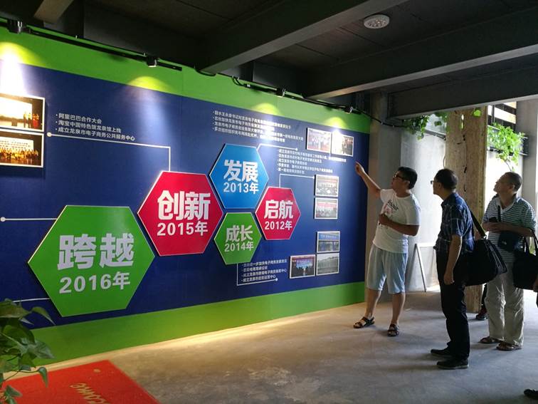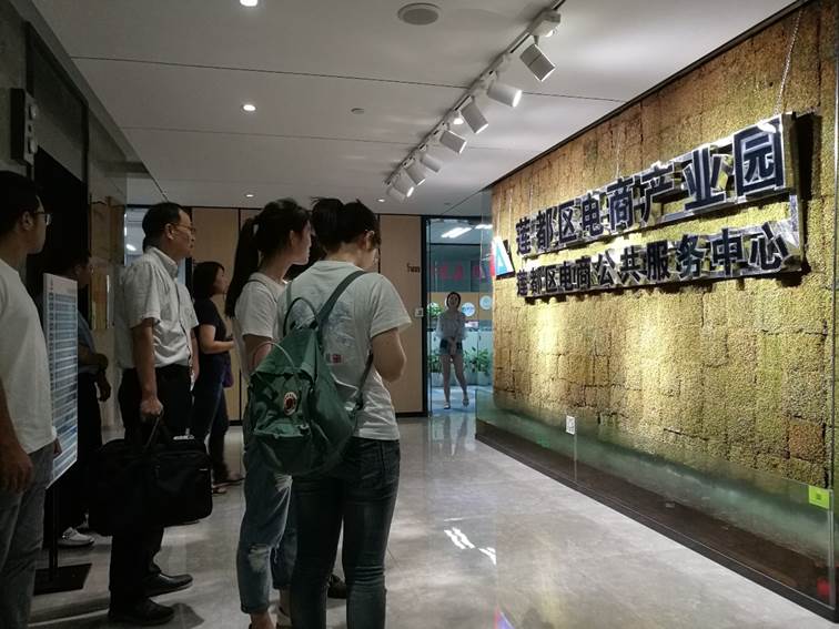 第二天一早,服务团一行人便驱车赶到龙泉市调研走访。龙泉市是我校结对帮扶的对象,也是此次调研和服务工作的重点,作为浙江西南经济欠发达的地区,龙泉的土地和工业资源相当匮乏,农业和工业相对落后,但宝剑、青瓷和特色农产品等却独树一帜,形成了以宝剑和青瓷为核心的特色产业链,与电子商务的结合也产生了一定的效益。服务团先后参观了龙泉电子商务创业集聚大楼和龙谷青创园,分别了解了已壮大成熟的电子商务企业和初创型电子商务企业的发展情况,以及地方政府在税收、人才培养和物流服务等方面给予的政策支持。目前,当地以创业园为基础的产业链已基本形成,新产品研发、包装辅料改良、网络销售和物流配送等一气呵成,与时尚相结合的创新产品层出不穷,为传统工艺赋予了新的生命力。不仅是特色产业,龙泉的创业园区还吸引了来自外地的电商企业入驻,进一步证明了龙泉市在电子商务领域的软实力之强大、发展前景之广阔。