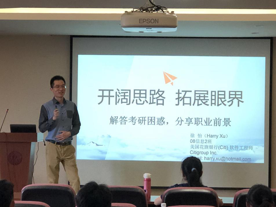 “合理的目标,充足的时间,决心坚定的考验伙伴,持久战的精神,强大的心理调节能力与科学的学习方法”是学长总结考研的六大成功因素。其后的职业分享环节,学长更是与同学们相谈甚欢,耐心听完同学们的疑惑并一一做出细致的解答。三个多小时的分享,同学们纷纷表示受益匪浅,确实开阔了思路,扩展了眼界。