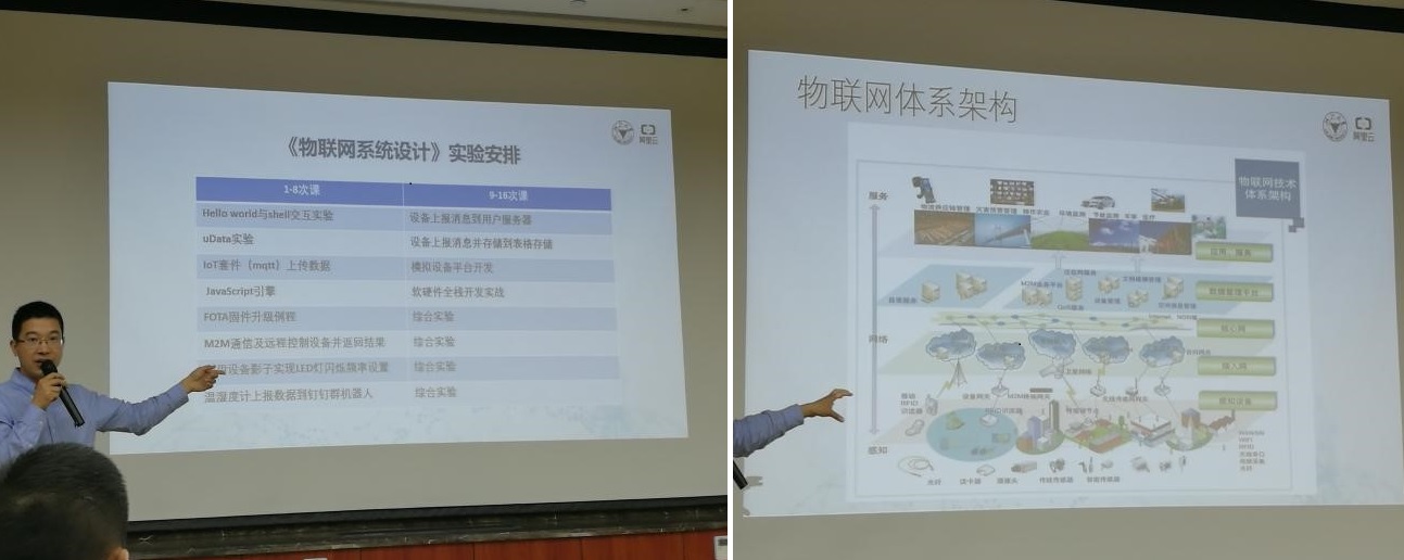 本次会议邀请浙江移动、浙江大学、阿里云等相关领域专家,做了有关万物互联趋势、物联网应用技术、NB-IoT技术实践、AliOS物联网套件使用等相关主题讲座和报告,对物联网创新创业、物联网系统设计课程建设、一站式开发工具等做了详细地介绍。