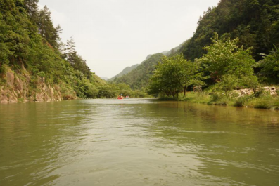体验过有趣的农耕文化,感叹过古人智慧之后,我们来到了剑门关,老师们分成小组坐皮艇观赏大峡谷的美景。穿梭在时而湍急时而平缓的溪流当中,两岸连山,重岩叠嶂,舜余之间便到达终点,无怪乎古人云“虽乘奔御风,不以疾也。”