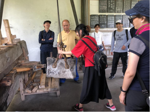 白马崖之后,换乘景区公交车,又到了第二个景点——老碓溪。这里是农耕文化的“博物馆”,最出名的便是芝麻油坊,还未走近便能闻到芝麻油的香味,体验传统的手工榨油方法,再读读有趣的打油诗,人生一大乐哉。