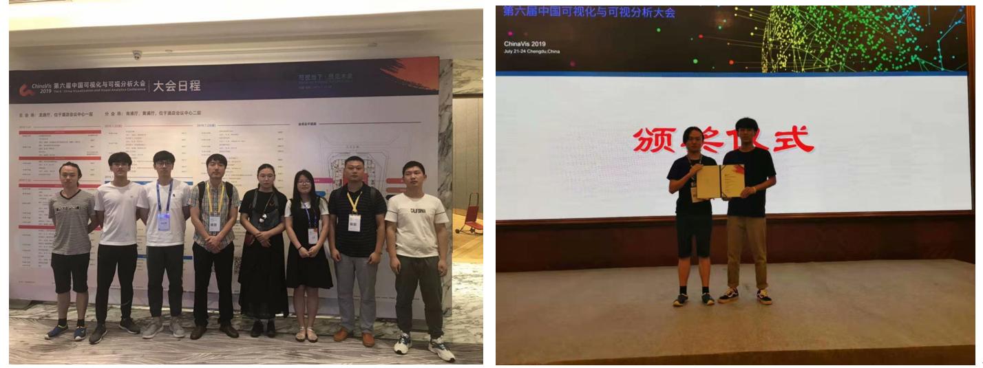 2018级软件工程专业本科生杨振东、陈远翔等5位同学参加ChinaVis2019数据可视分析挑战赛,获得优秀奖。与会同学与专家学者们进行深入的交流和讨论,收获了学术研究的信心和进一步规划自己前途的可贵经历。