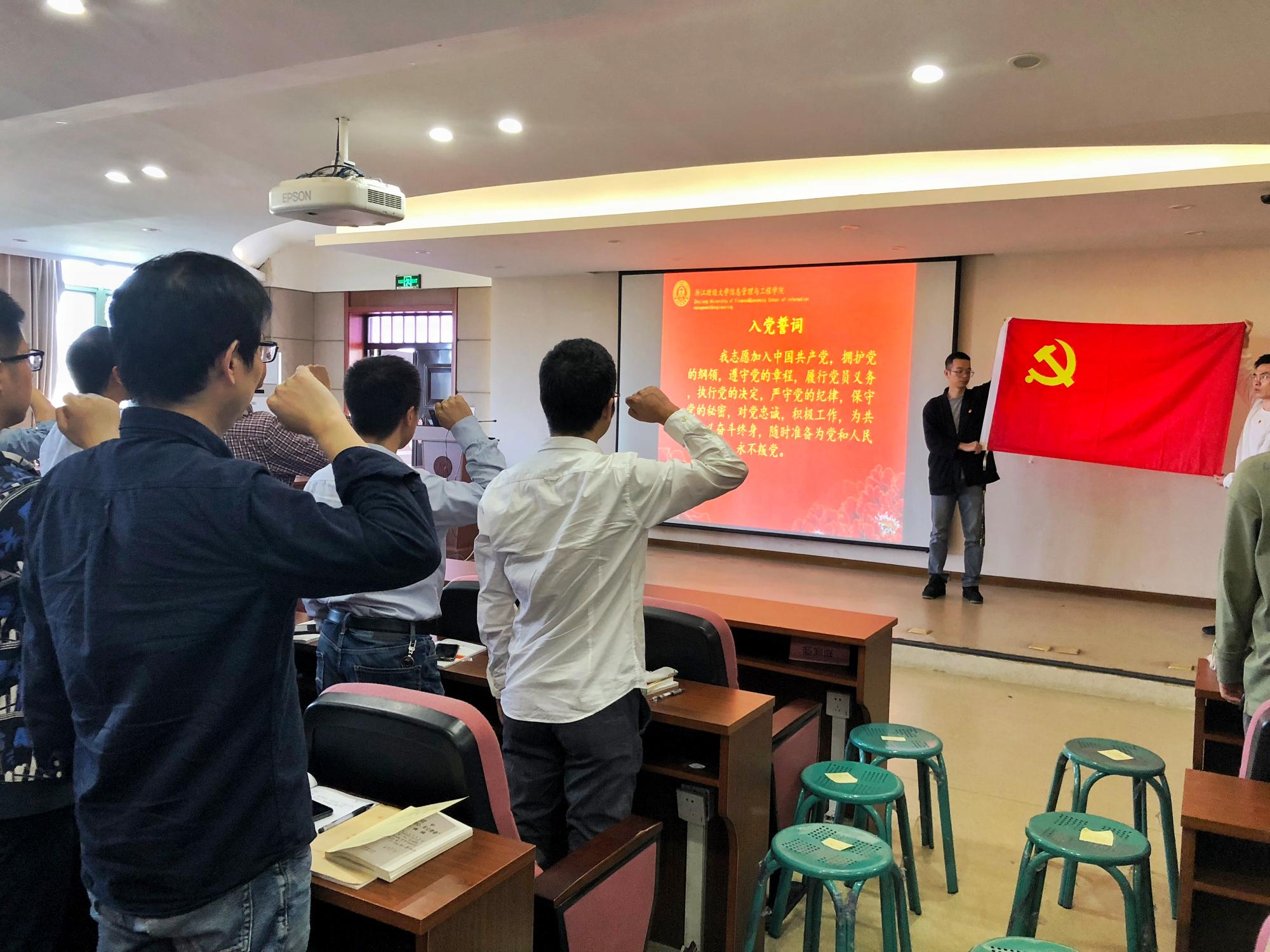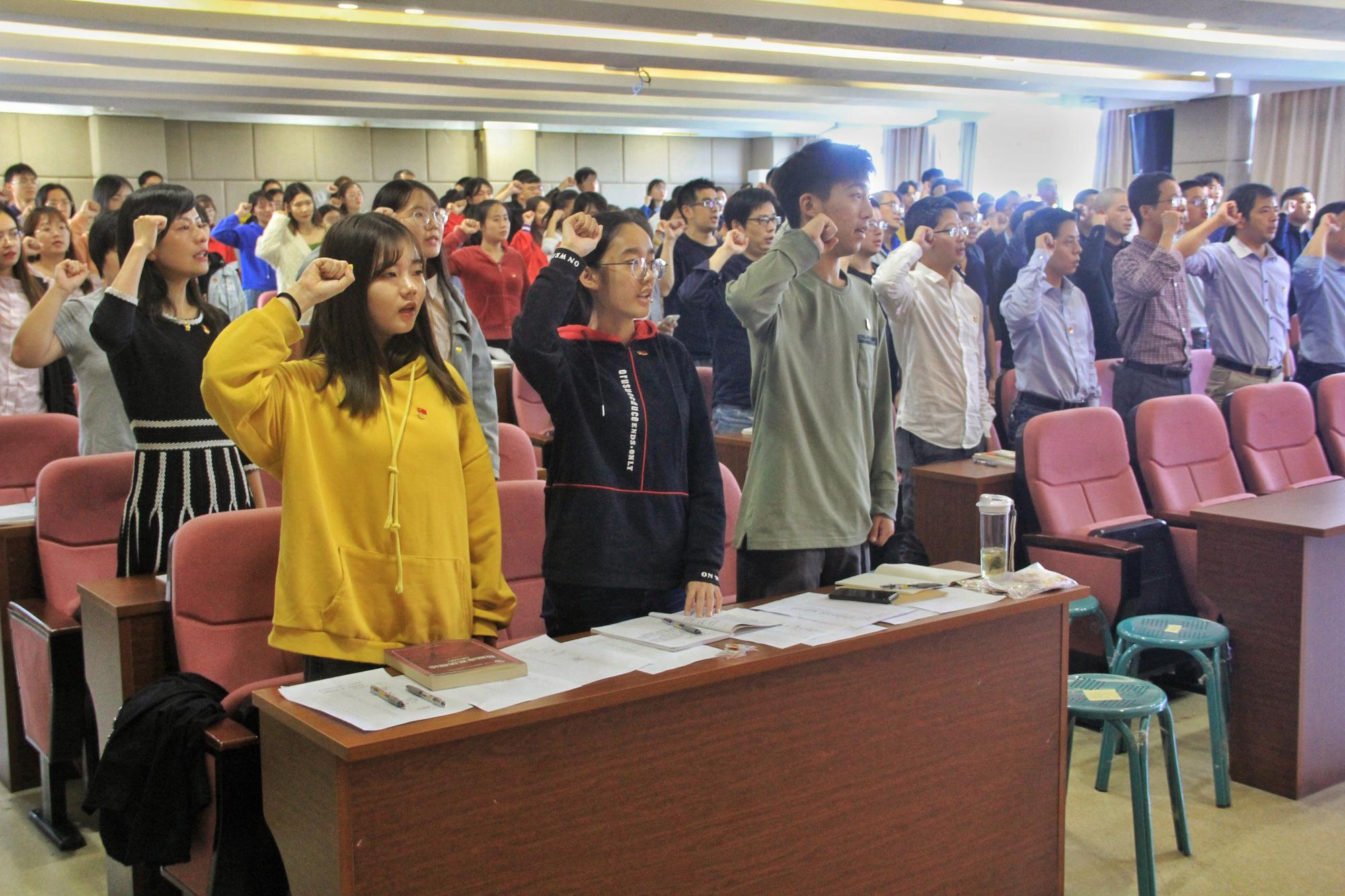 最后,全体师生党员面对鲜红党旗庄严肃立,右手握拳齐肩举起,在学院党委副书记陆颋浩的带领下,庄严宣读中国共产党入党誓词。重温入党誓词正是让所有党员牢记自己入党时的初心,进一步坚定理想信念,牢记肩负的使命,以实际行动兑现对党的庄严承诺。